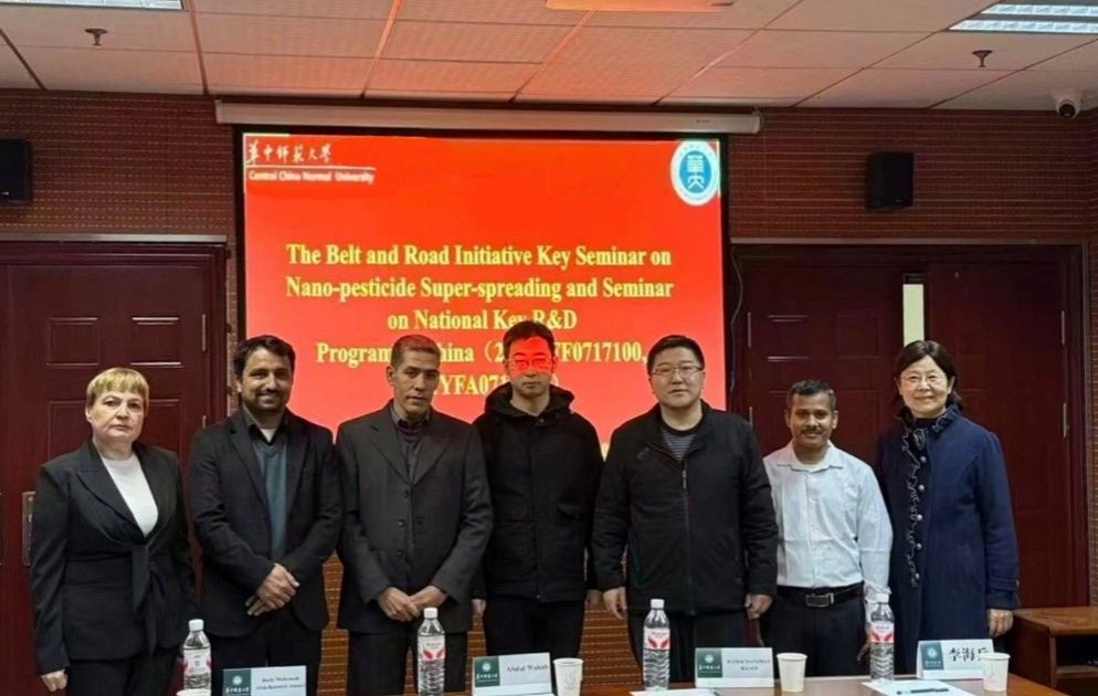华大在线讯(通讯员 李海兵)日前,“一带一路超铺展纳米农药重点研讨会暨国家重点研发计划项目讨论会”在我校举办。会议旨在搭建学术交流与成果互鉴的优质平台,展示农药化学相关领域的最新研究进展,促进学术合作和创新发展。埃及国家研究中心应用有机化学系Reda Mohamed Abdelhameed Ahmed 教授、印度马德拉斯大学RAMACHANDRAN RAJAN教授、巴基斯坦白沙瓦大学Abdul Wahab副教授、俄罗斯乌拉尔联邦大学应用化学系ELENA KOVALEVA教授等出席会议并作邀请报告。