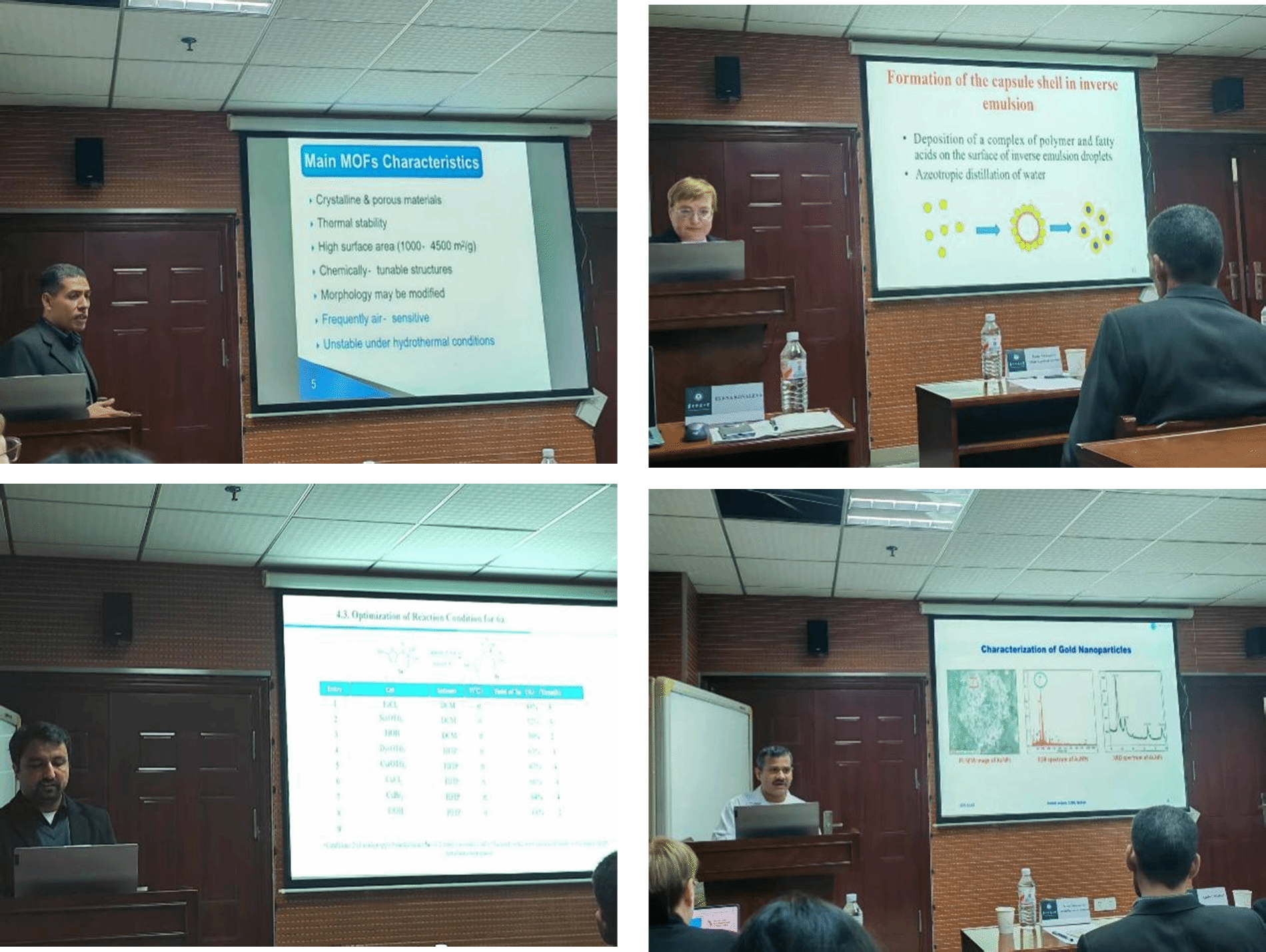 Reda教授揭秘金属有机框架的精准设计,让分离、递送、催化“一网打尽”;Rajan教授直击纳米材料毒性痛点,为农药减量增效打开“靶向之门”;Wahab副教授以呋喃去芳构化“魔法”,高效合成复杂杂环,收率飙升;Kovaleva教授更以多糖纳米凝胶“装载”植物源活性,天然农药从此“智能控释”,为我校师生在绿色农药与纳米生物技术领域提供了前沿视角与创新启发。