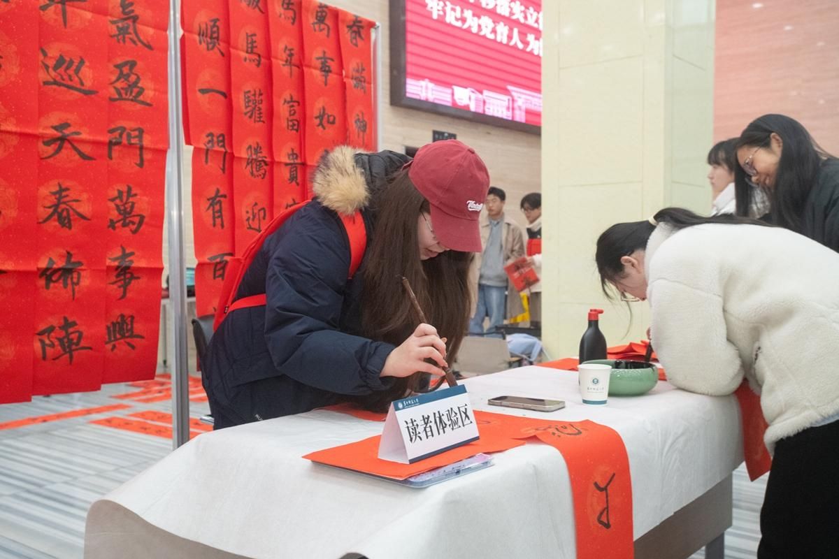 自2016年起,图书馆(博物馆)已连续九年举办“年文化”品牌活动,今年以“百节年为首 天涯共此时”为主题,数百名师生通过写楹联、送祝福等沉浸式体验,在笔墨交叠中感悟“年文化”蕴含的家国情怀与人文精神,切实增强了文化认同与自信。现场累计送出春联作品数百幅。