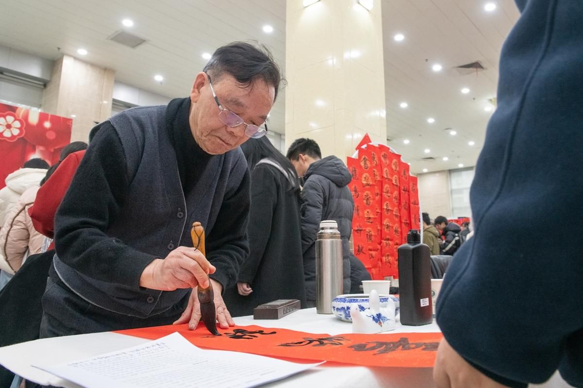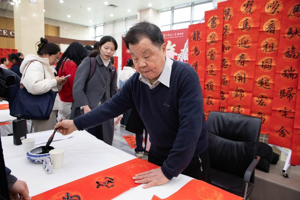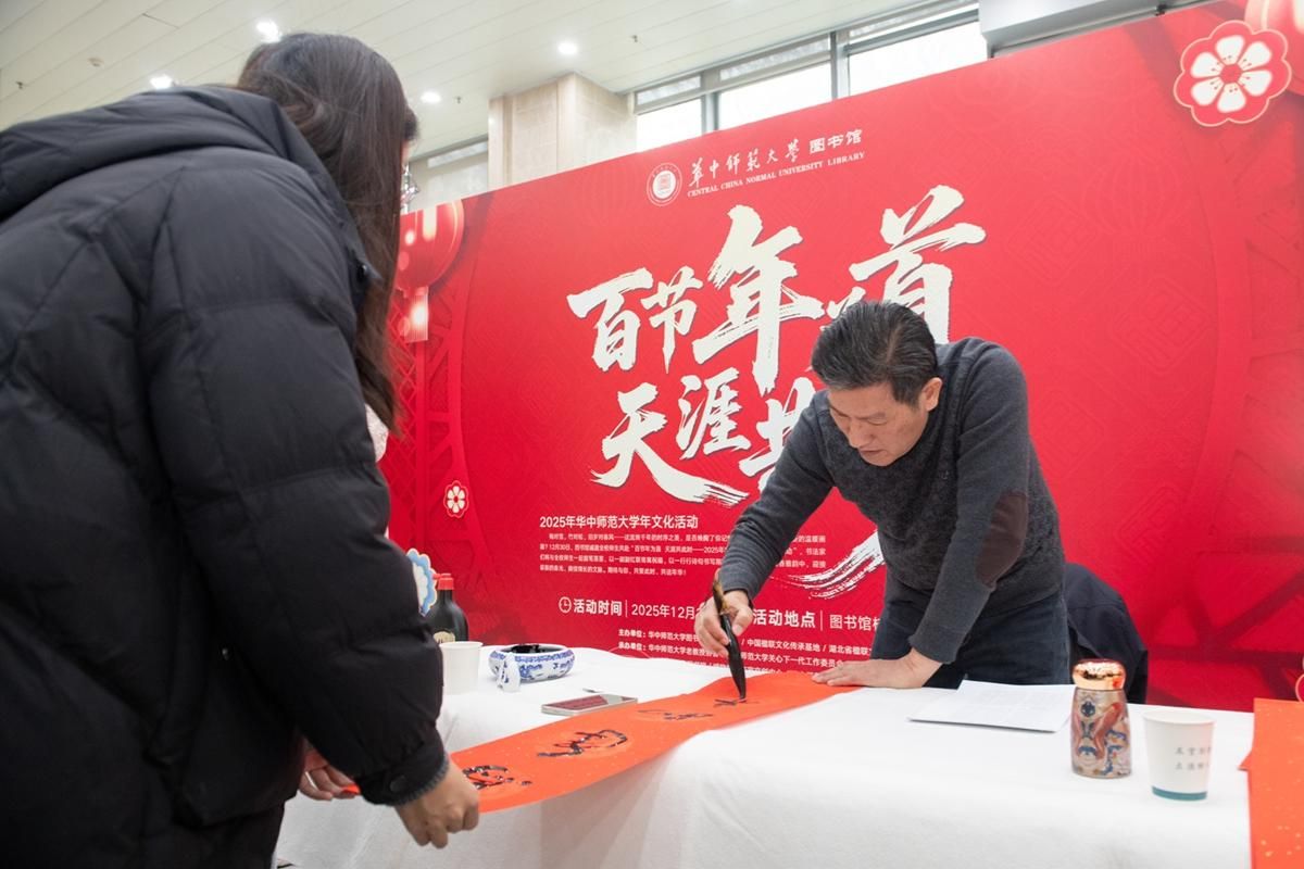 华大在线讯(通讯员 吴梦茹)为引导广大师生在感知与体验中传承中华文脉、涵养家国情怀,12月30日,“百节年为首,天涯共此时”2025年华中师范大学“年文化”活动在图书馆(博物馆)桂子山主馆一楼大厅举办。校老教授协会书法家与校外书法家齐聚现场,共同挥毫泼墨,为师生送上新春祝福。校党委副书记査道林出席。
