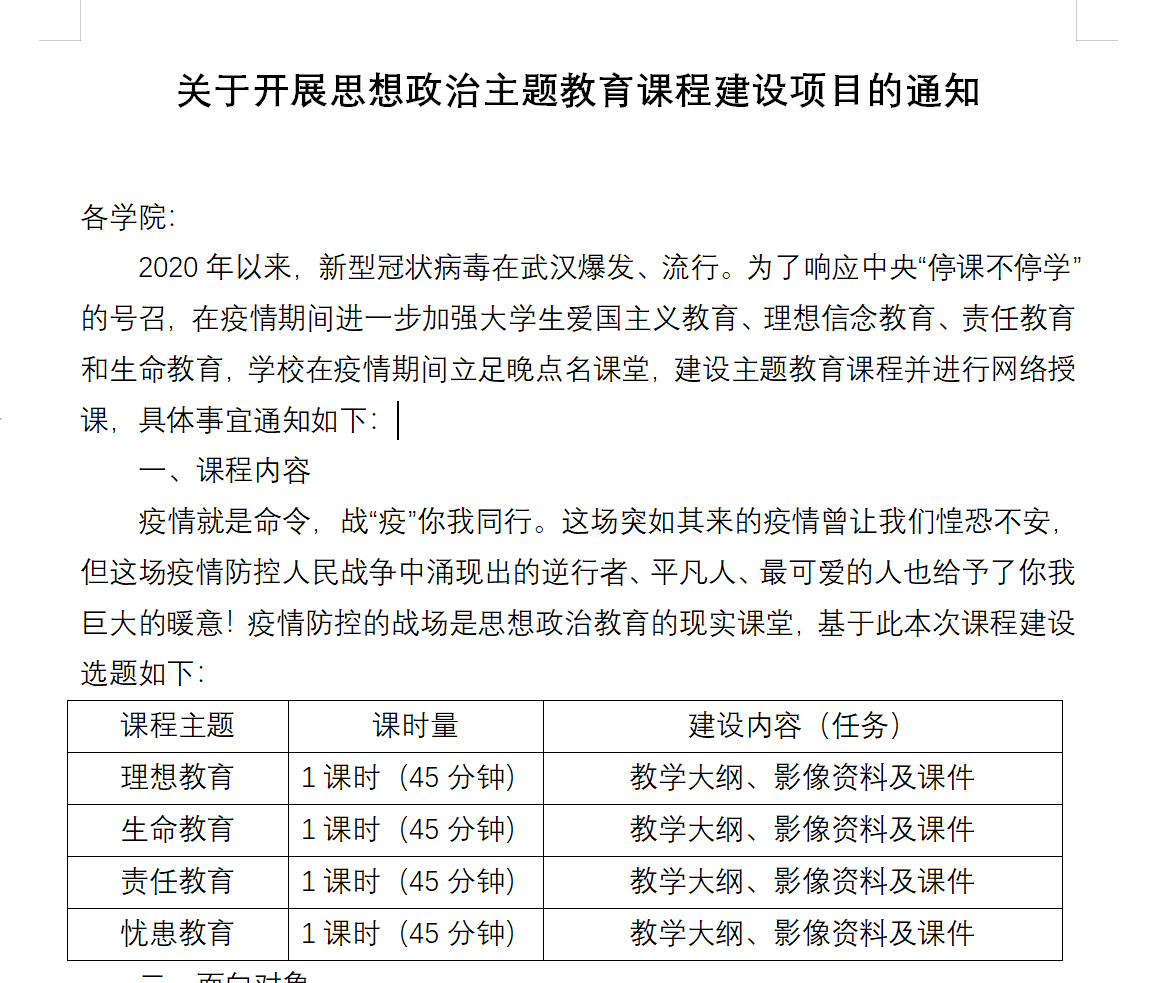 2月底,学工部研究制定了“思政主题教育课程项目建设方案”,各学院党委副书记、专职辅导员、班主任等纷纷响应。