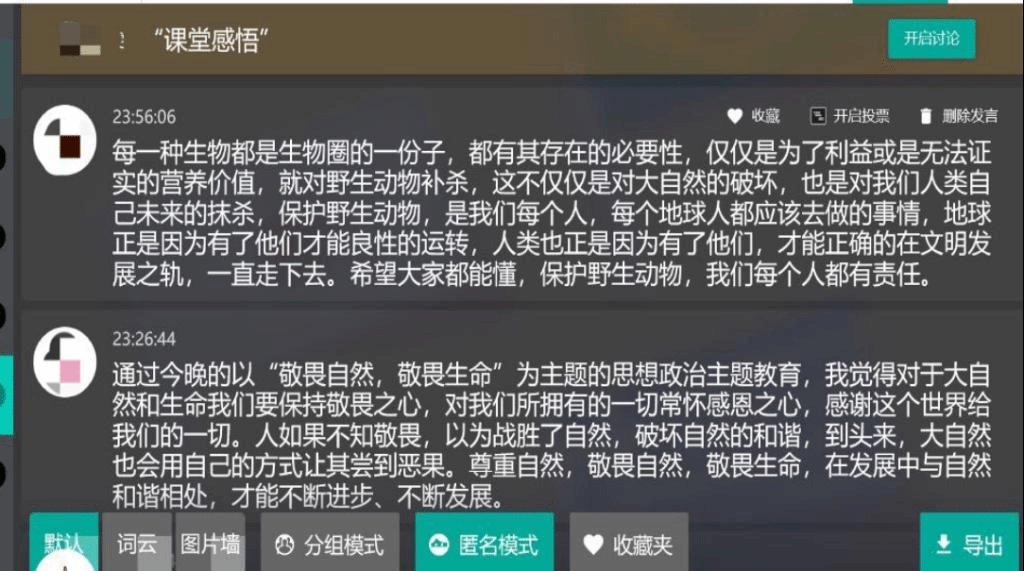 有了校党委书记的亲自“打样儿”,老师们授课就更有信心和底气了,纷纷通过腾讯会议、微助教、优学院等网络平台分享他们对“在战‘疫’中成长”的认知和理解。物理科学与技术学院刘倩老师立足“责任”这个基点,围绕“坚守”“互助”“成长”三个层次,展示疫情期间政者、医者、军者、志愿者、居家市民关于责任的群像故事,向学生传达责任和担当的深度内涵;城市与环境科学学院卢雯老师聚焦“敬畏自然,敬畏生命”这一主题,从疫情发生根源入手,引导学生正确认识人与城市、人与自然、人与社区之间的关系;教育学院副书记黄玉新老师通过列举战疫期间凸显出的社会主义制度的优越性,引导学生牢固树立社会主义道路自信、理论自信、制度自信和文化自信。