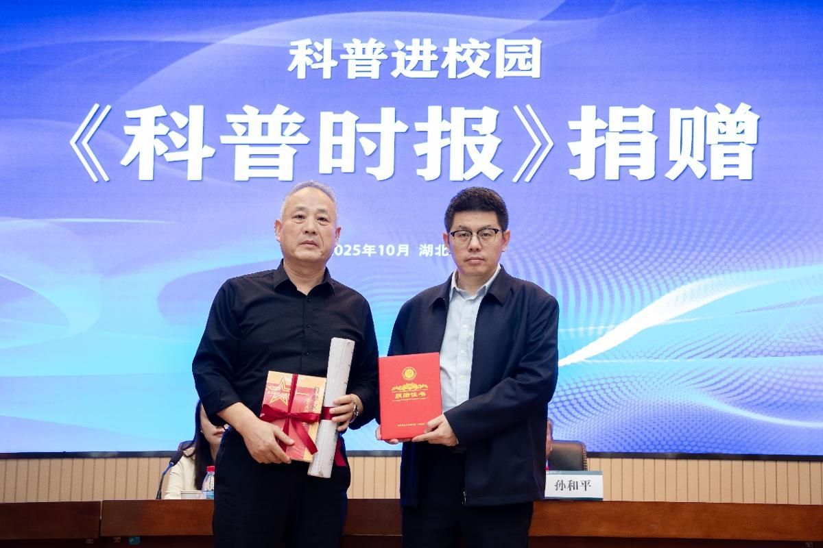 报告会期间,湖北科学技术出版社副总编辑杨瑰玉代表出版社向我校捐赠《科普时报》及科普图书。