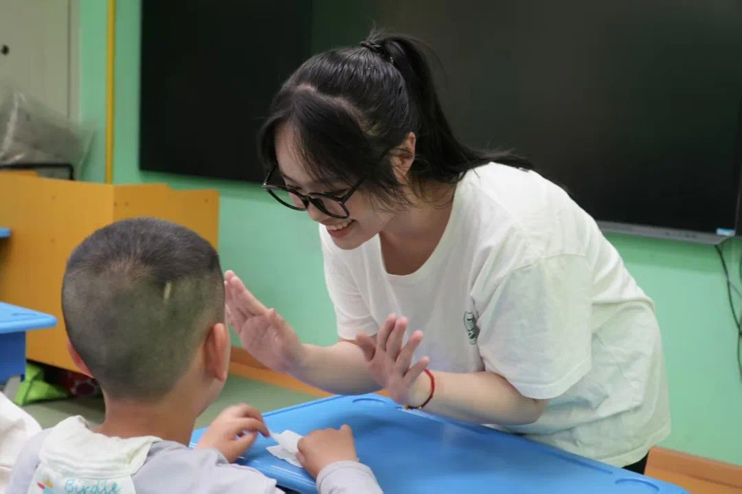 初次接触到特殊教育,认知和经验上的空白让叶柔妘感到迷茫。“一开始真的是手足无措,担心没办法照顾好孩子们”,大一时在武昌区培智中心学校的见习经历至今让她记忆犹新:第一次面对课堂上学生的突发状况,她只能慌乱地安抚,却不知如何有效引导学生矫正问题行为。