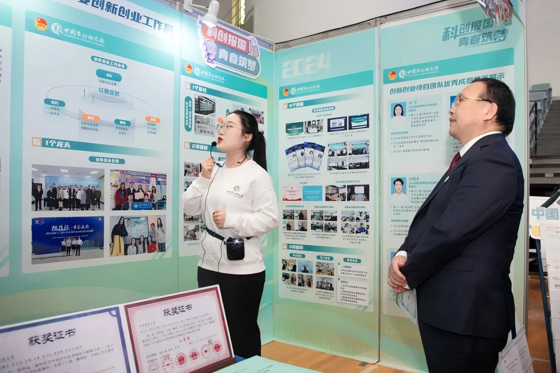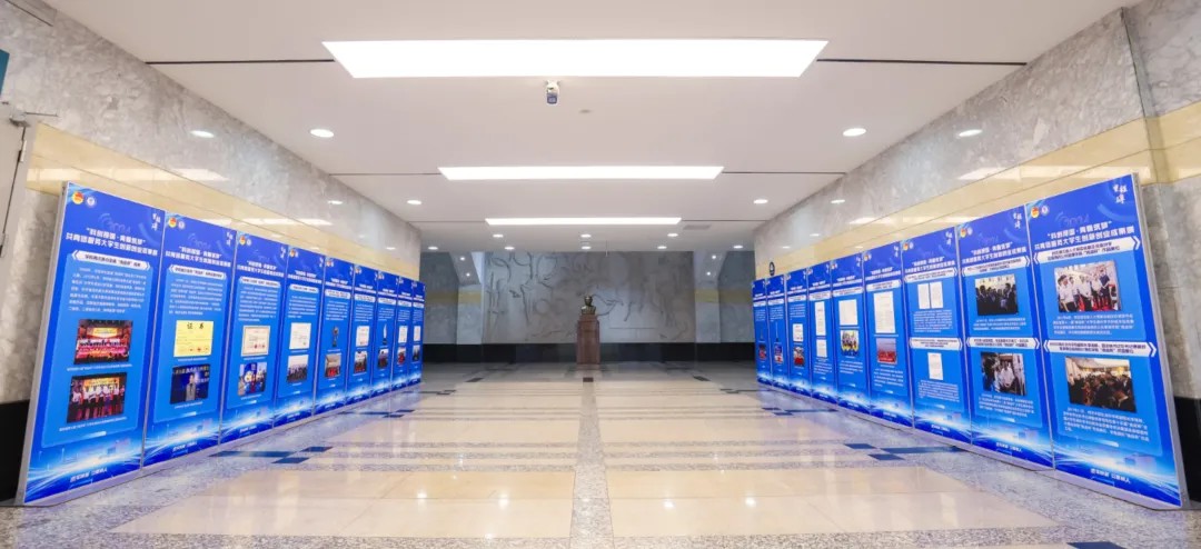 开幕式当天,佑铭体育馆全天设置“科创报国·青春筑梦”共青团服务大学生创新创业成果展。展会分设“学校共青团服务大学生创新创业成果展”“学校创新创业竞赛优秀项目展”“基层团委创新创业工作展”三个板块,以项目展板、实物展示、多媒体演示、现场互动等多种形式展开,全方面、多层次、深度化展现我校创新创业成绩和经验