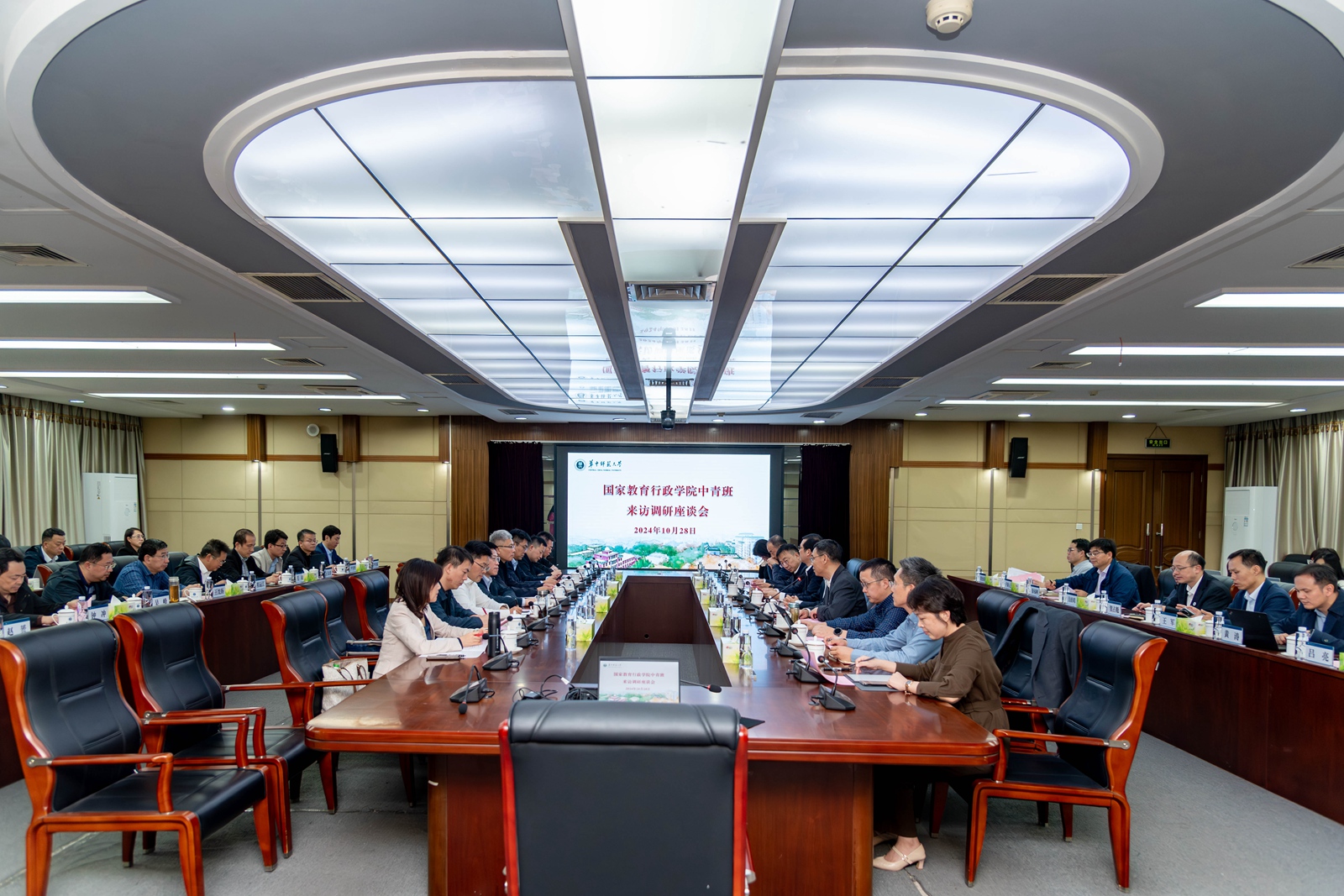 考察调研团全体学员,学校相关单位负责人参加座谈会。会前,考察调研团一行参观了校史馆、教育大数据应用技术国家工程研究中心、“情指行”中心,观摩了马克思主义学院教师丁茜主讲的《马克思主义基本原理》课程。