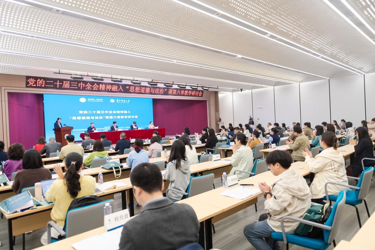 华大在线讯(通讯员 闫燕)为深入学习贯彻党的二十届三中全会精神,加强“思想道德与法治”课程建设和大中小学思政课一体化建设,11月16日,由教育部高校思政课教指委“思想道德与法治”分教指委主办,我校承办“党的二十届三中全会精神融入‘思想道德与法治’课第六章教学研讨会在校举行。