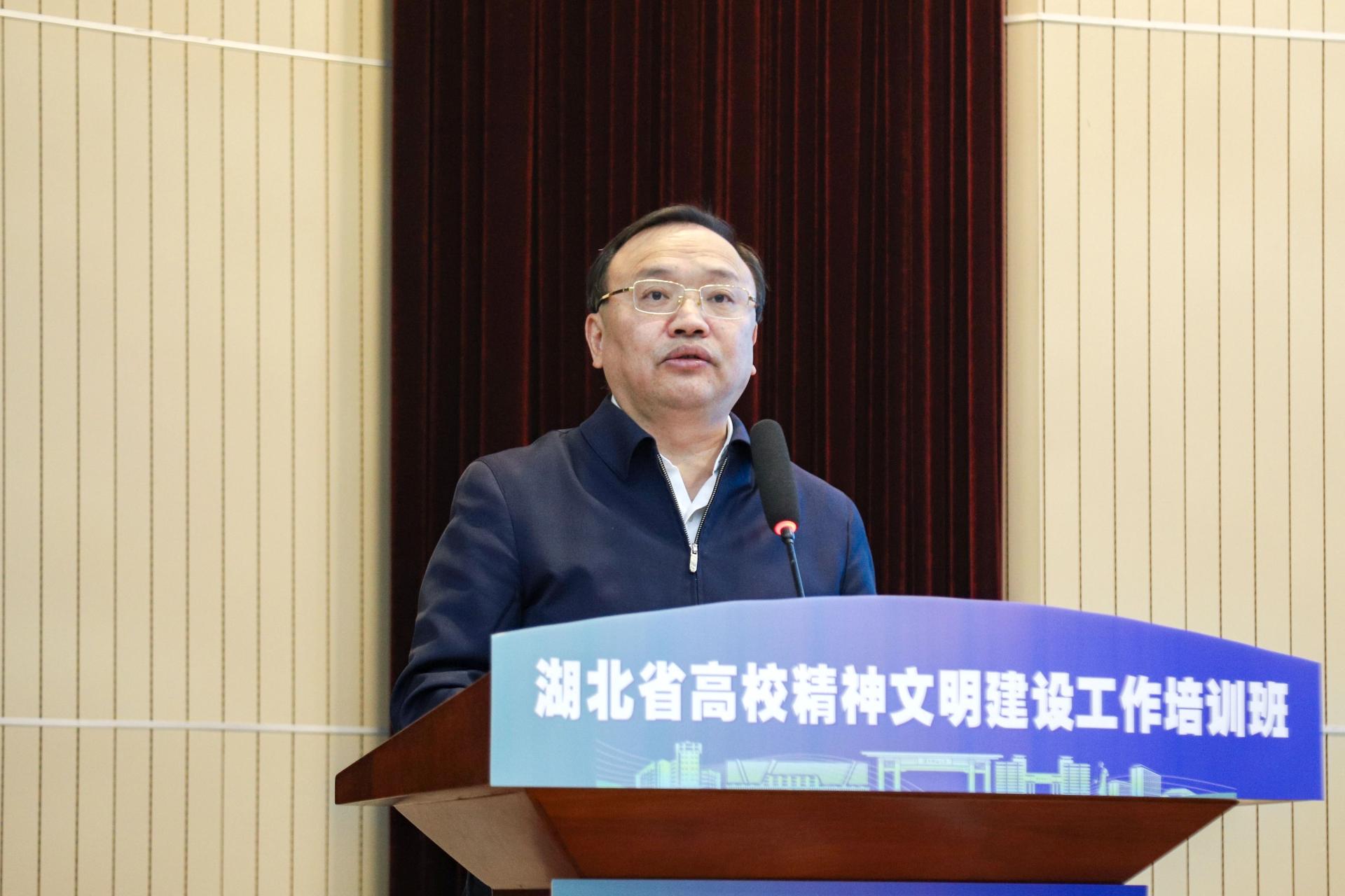 夏立新在致辞中表示,华中师大始终将文明校园创建作为“一把手工程”,深入学习贯彻习近平总书记关于教育和精神文明建设的重要论述,紧扣“六好”标准,深化践行博爱、博学、博雅的“三博”理念,大力弘扬教育家精神,创新实施“理响华师”“红色华师”“强教华师”“文化华师”“大美华师”“平安华师”等“六大工程”,着力构建落实立德树人根本任务新生态新格局,以高质量文明建设推进学校事业高质量发展。精神文明建设事关教育大局、发展全局,具有重大战略意义。期待各位学员培训期间深入学习交流,分享宝贵经验,共同推动湖北高校精神文明建设迈上新台阶,为培养堪当民族复兴重任的时代新人、建设教育强国和文化强国、建设中华民族现代文明作出湖北高校应有的贡献。