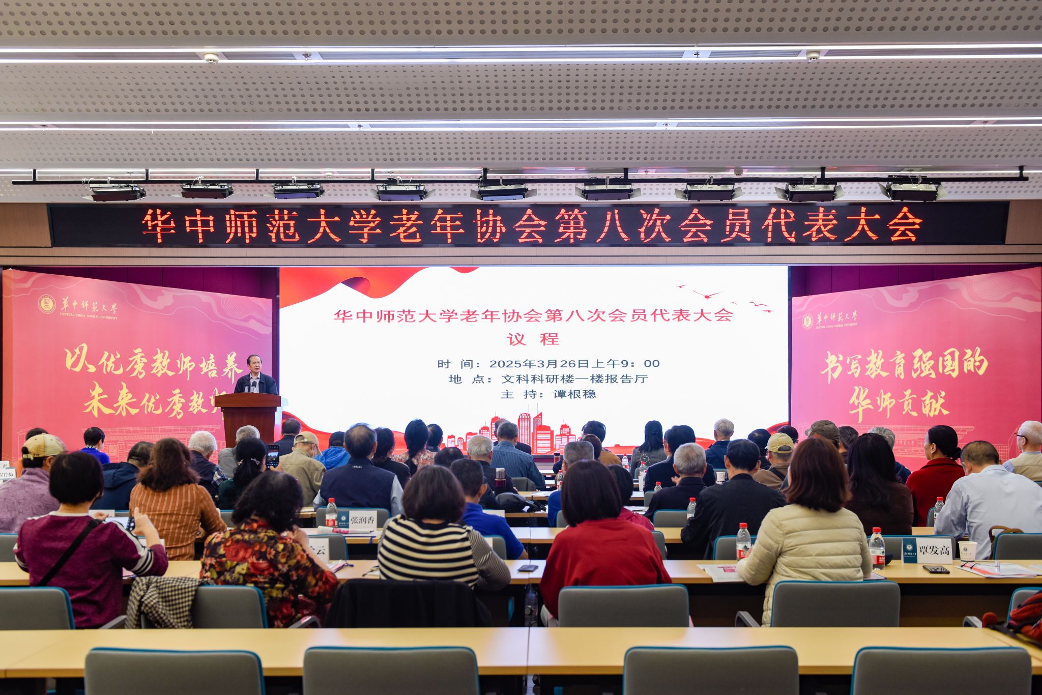 华大在线讯(通讯员 刘旭平)3月26日,我校老年协会第八次会员代表大会在文科科研楼一楼报告厅召开。校党委副书记查道林、湖北省高校老年协会会长丁振国出席,117名会员代表参会。会议由校老年协会第七届理事会副会长谭根稳主持。