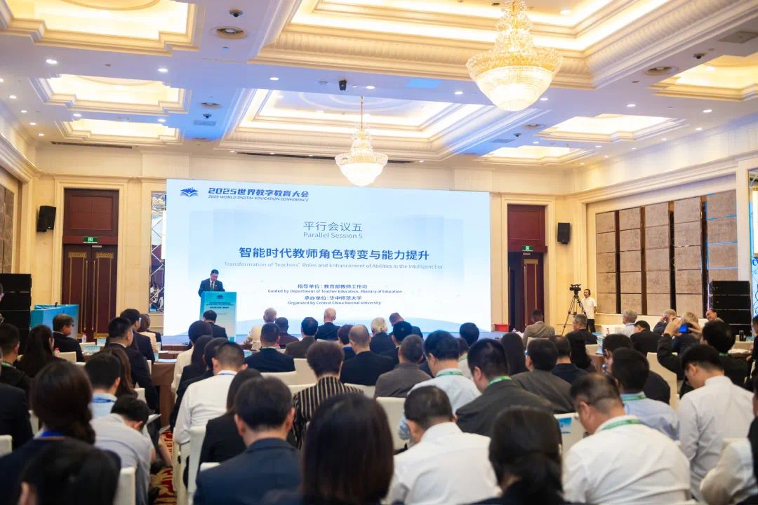 华大在线讯(记者 郝日虹)5月15日,2025年世界数字教育大会第五平行会议“智能时代教师角色转变与能力提升”在武汉国际会议中心举行。本次会议由教育部教师工作司指导,华中师范大学承办。来自15个国家和地区的教育部门负责人、教育机构代表、国际组织专家以及教育数字化研究领域的学者150余人参会。会议围绕人工智能时代教师能力培养、人机协同教学实践、数字素养等议题展开讨论,旨在推动全球教育数字化进程中教师发展合作与对话,助力教师角色转变。