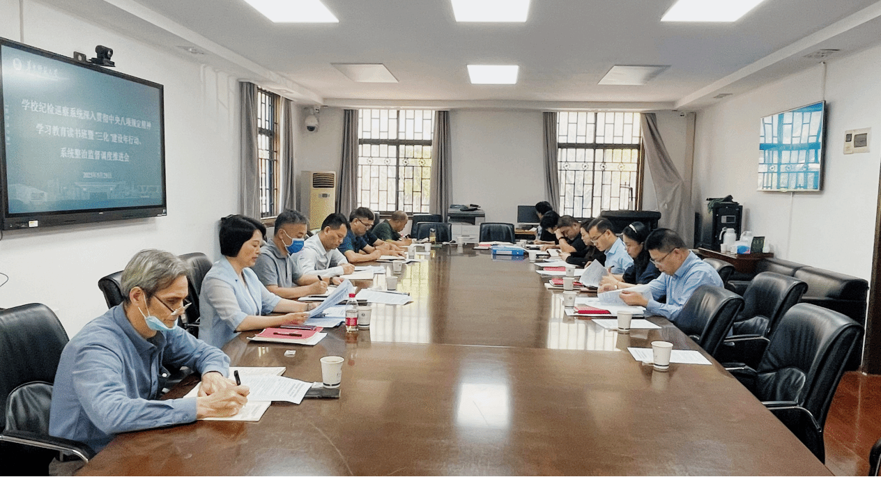 华大在线讯(通讯员 涂敏)5月29日,学校纪检巡察系统举办深入贯彻中央八项规定精神学习教育读书班暨“三化”建设年行动、系统整治监督调度推进会。校党委副书记、纪委书记刘继文出席会议并讲话。校纪委副书记、纪委办公室主任、监察处处长杨青松主持会议。全体专职纪检巡察干部参会。