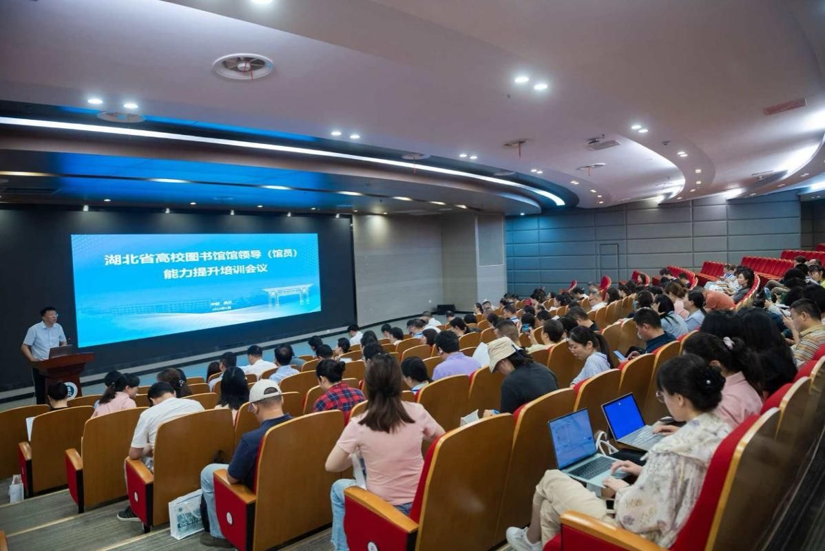 华大在线讯(通讯员 吴梦茹)6月12日,湖北省高校图书馆馆领导(馆员)能力提升培训会议在校举行。副校长李鸿飞、《图书馆杂志》主编金晓明、湖北省高校图工委秘书长、武汉大学图书馆馆长董有明等出席开幕式,来自全省60余所高校的160余名馆领导及业务骨干参会。