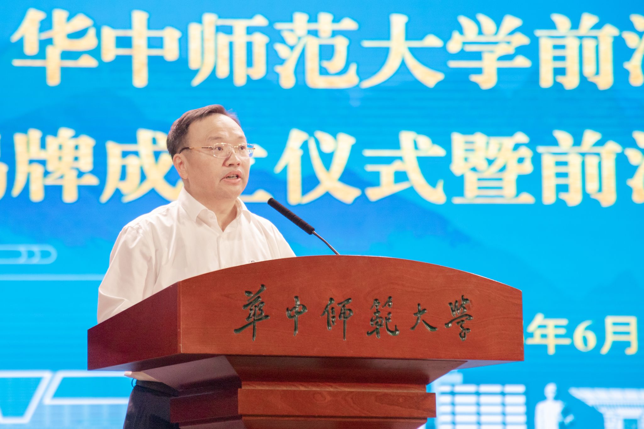 华大在线讯(通讯员 杨心怡)6月25日,华中师范大学前沿催化研究院揭牌成立仪式在大学生活动中心大礼堂举行。2021年诺贝尔化学奖获得者本杰明·李斯特教授,武汉市人民政府副市长孟晖、湖北省科技厅二级巡视员吴勇杰、武汉市科技创新局二级巡视员徐涛、黄陂区委书记何建文、黄陂区人民政府区长张劲、黄陂区人民政府副区长郑威,校党委书记夏立新、校长彭双阶出席仪式。副校长刘三女牙主持仪式。