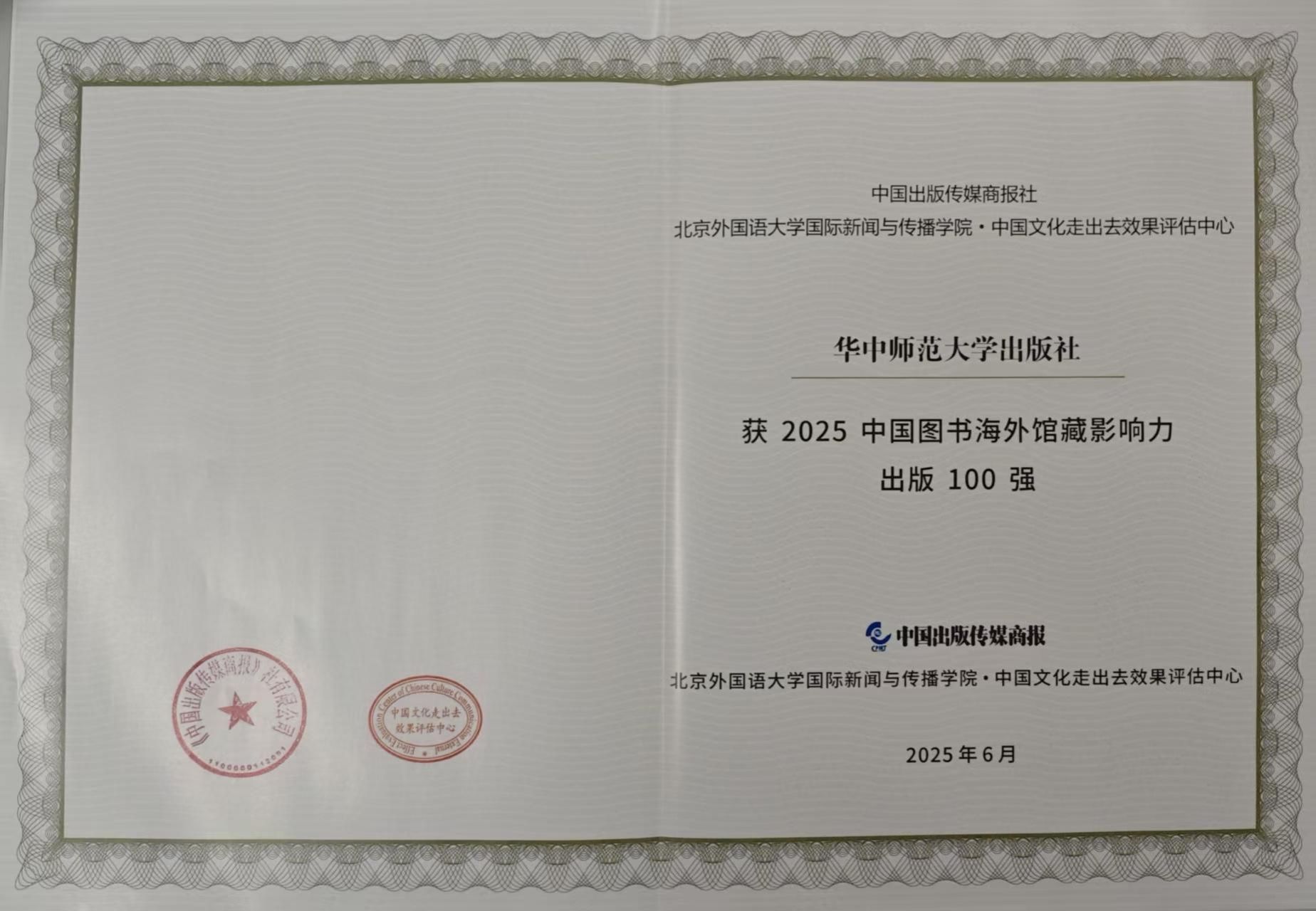 华大在线讯(通讯员 白炜)近日,在第31届北京国际图书博览会(BIBF)上,中国出版传媒商报社、北京外国语大学国际新闻与传播学院·中国文化走出去效果评估中心联合发布了2025中国图书海外馆藏影响力报告,校出版社入选“2025中国图书海外馆藏影响力出版100强”。