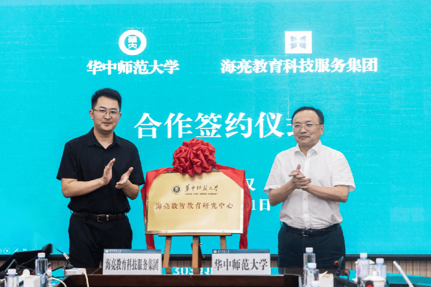夏立新与陈军伟为华中师范大学“海亮数智教育研究中心”揭牌
