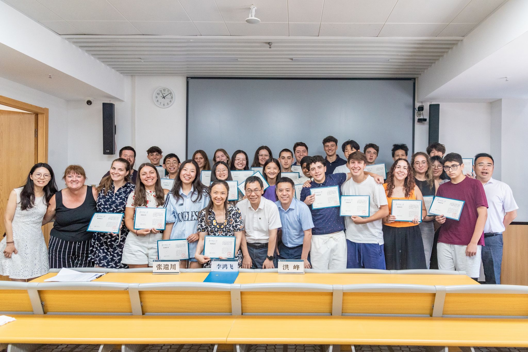 华大在线讯(通讯员 曹璐萍)7月18日,我校“镜头下的中国:古都巡礼”国际学生游学项目结营仪式暨“镜头下的中国:京楚文化”国际学生游学项目开营仪式在新文科综合楼W332教室举行。副校长李鸿飞、国际合作部主要负责人、“镜头下的中国:古都巡礼”国际学生游学项目营员以及“镜头下的中国:京楚文化”国际学生游学项目全体营员出席仪式。