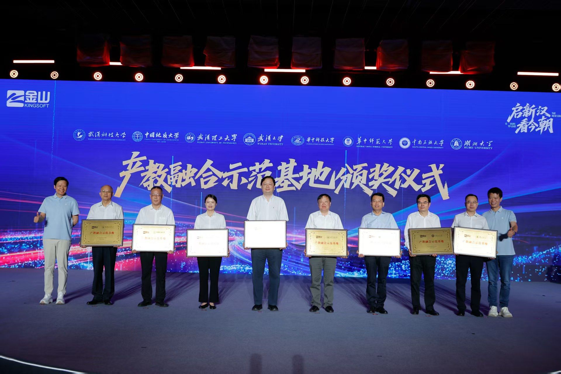 华大在线讯(通讯员 宗佳敏)8月18日,金山集团在光谷举行武汉金山软件园开园仪式,我校受邀出席活动,并被授予金山集团“产教融合示范基地”。金山集团董事长、小米集团创始人兼CEO雷军、金山集团执行董事兼CEO邹涛为我校颁发奖牌,校党委副书记、纪委书记刘继文代表学校领奖。