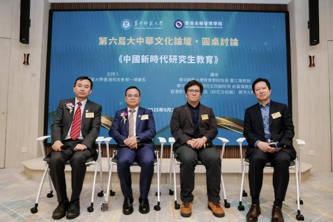 开学典礼后,第六届大中华文化论坛随即举行。我校研究生院副院长俞云伟教授发表题为《中国研究生教育的发展历程回顾和趋势展望》的主题演讲。圆桌讨论环节,我校雷江华教授、俞云伟教授和香港都会大学副校长郭予光教授,围绕“中国新时代研究生教育”展开探讨。