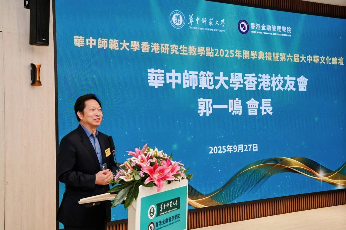 我校香港校友会郭一鸣会长分享了个人在母校求学的经历,欢迎新生加入校友会,并呼吁大家共同为母校与香港发展贡献力量。
