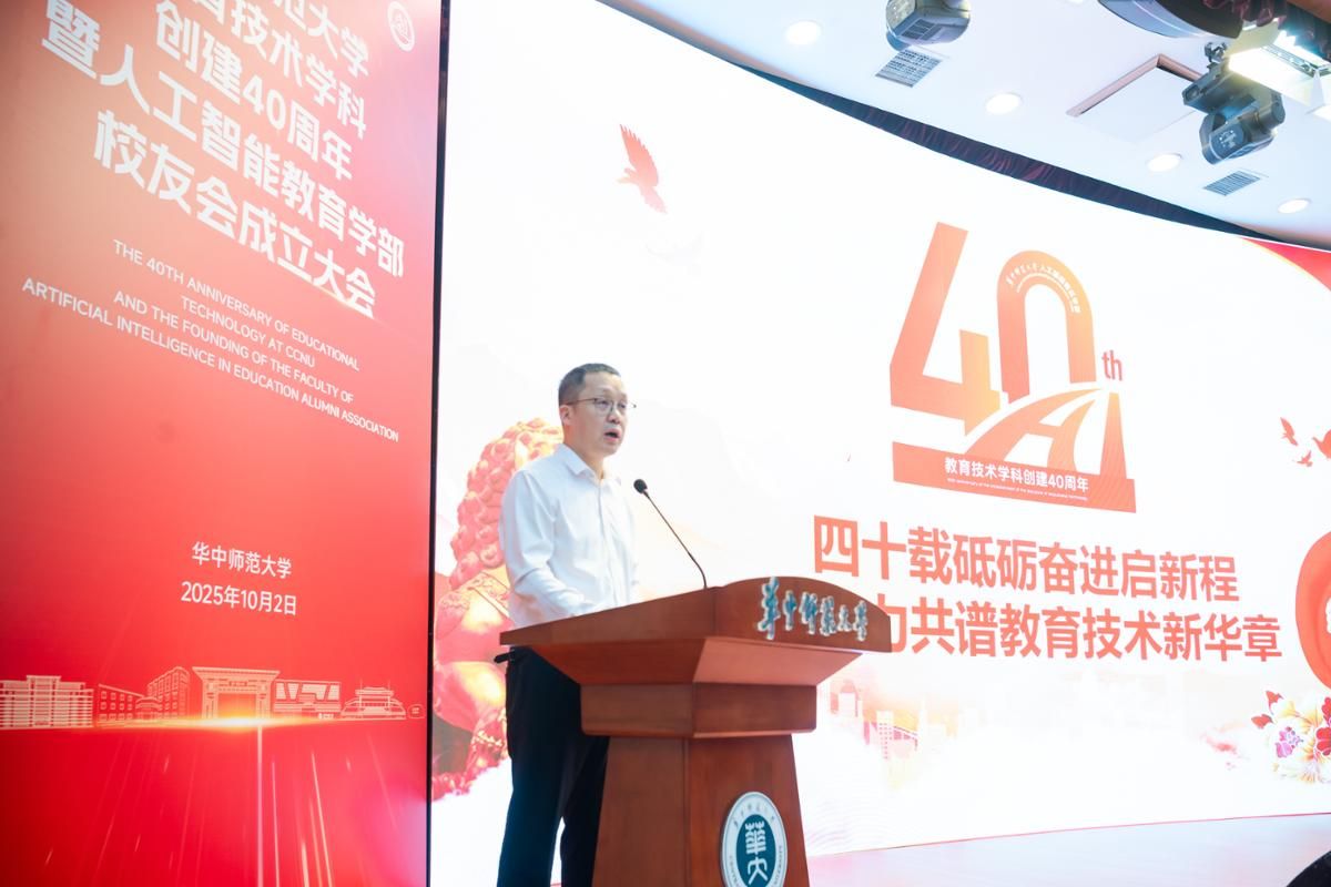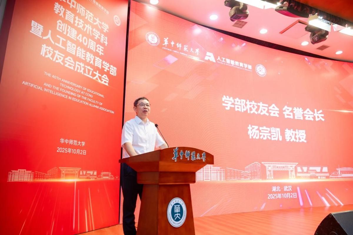 教育大数据应用技术国家工程研究中心主任、国家数字化学习工程技术研究中心主任、我校资深教授杨宗凯重温教育技术学科发展历程。他表示,自1985年电化教育专业正式成立,到如今建成国家数字化学习工程技术研究中心、教育大数据应用技术国家工程研究中心两大国家级科研中心以及十个省部级科研平台,2020年首设人工智能教育学部,屡创“第一”,始终在全国保持领先地位。他表示,校友会汇聚了来自政府、产业、学术和研究等各领域的杰出英才,诚邀全球校友常回母校,共建情感与事业共同体,续写世界一流学科建设的新篇章。