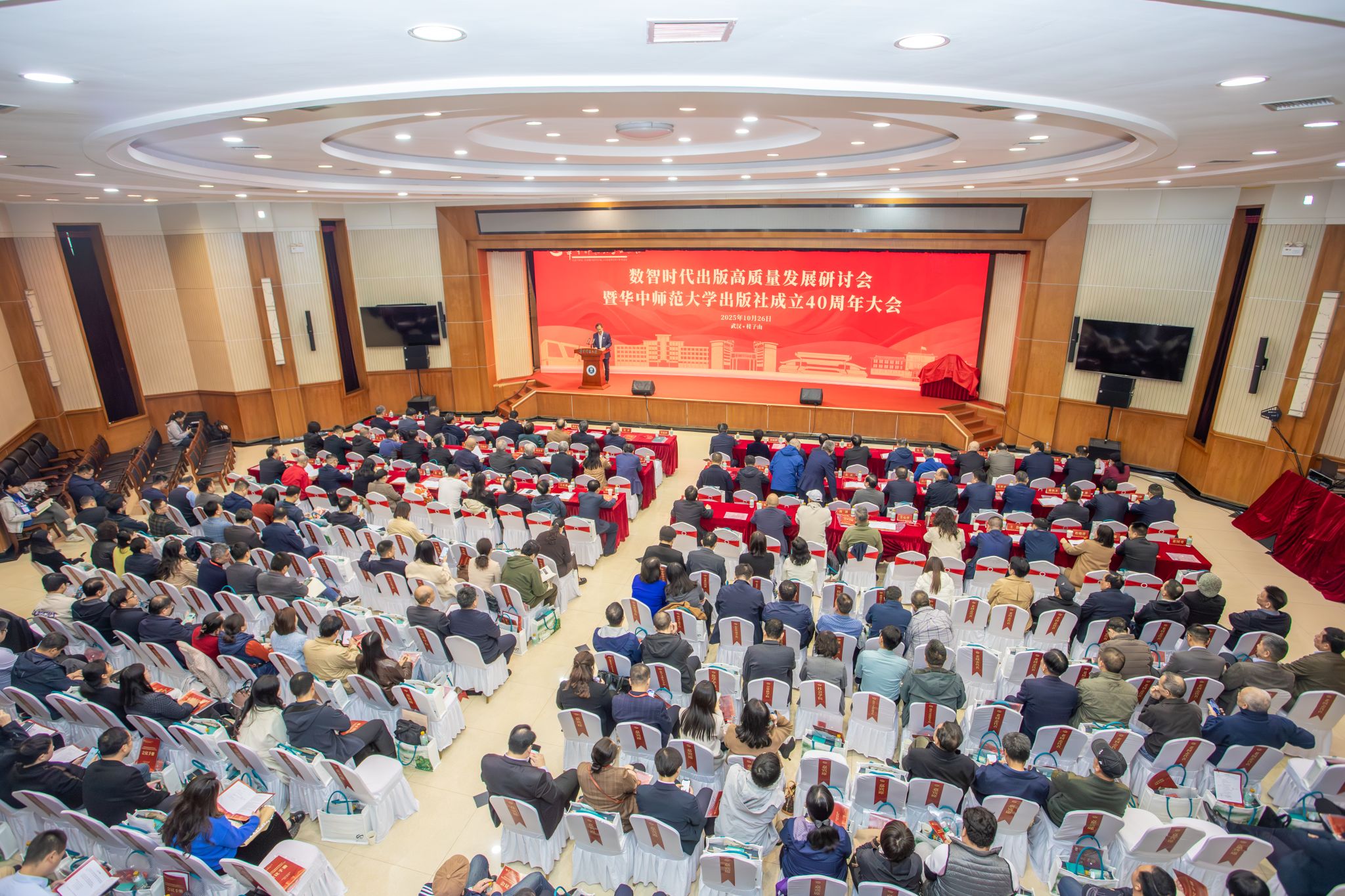 华大在线讯(通讯员 白炜)10月26日,数智时代出版高质量发展研讨会暨华中师范大学出版社成立40周年大会在科学会堂一楼报告厅举行。湖北省委宣传部二级巡视员周凤荣,著名出版家、《荆楚文库》编辑部主任周百义,著名楚文化研究专家、湖北省社会科学院原副院长刘玉堂,校长彭双阶,原副校长、校学术委员会主任彭南生,我校人文社科资深教授马敏、徐勇、朱英、胡亚敏,原副校长汪文汉,以及全国40多家出版社代表等出席大会。校党委副书记查道林主持大会。