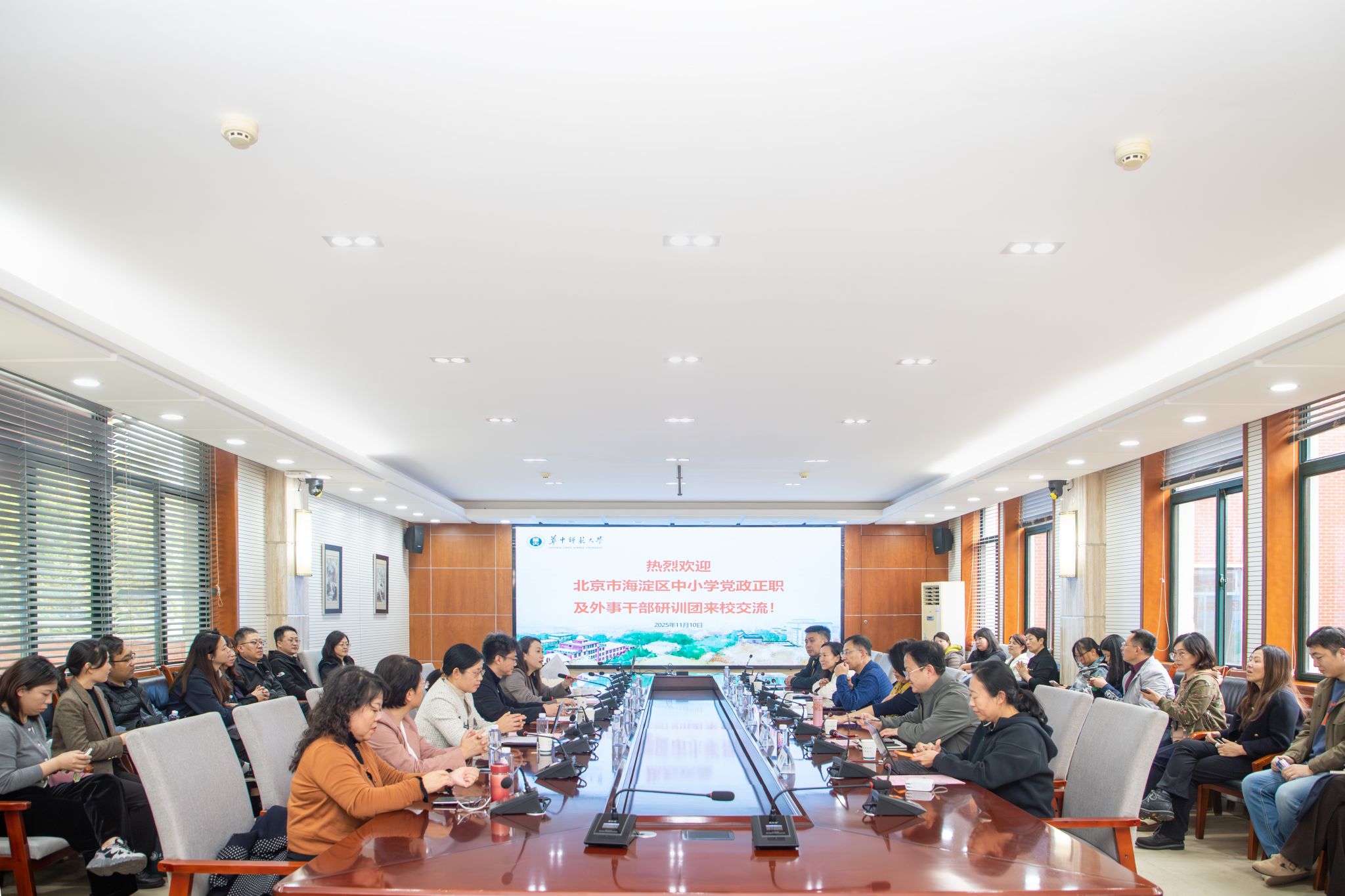 华大在线讯(通讯员 刘方)11月10日,北京市海淀区中小学党政正职及外事干部研训团一行来校交流,中国教育学会国际教育分会和外研社相关人员陪同。副校长吴丹与代表团座谈交流,国际合作部、本科生院、人工智能教育学部等单位相关代表参加。