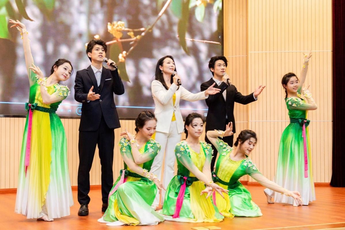 主题诗歌朗诵大会环节,我校新闻传播学院教师徐阳和学生带来诗歌朗诵《华师大,我们的妈妈》。湖北省朗诵艺术家协会常务副会长杨建领衔的朗诵艺术家们为大家带来了诗人严春芳创作的组诗《和平之声》。我校音乐学院教授赵雨薇和学生表演了歌舞《桂花雨》。诗歌朗诵以声音为媒介传播阅读,人们更加直观地感受到诗歌作品中的情感,整个现场氛围热烈。