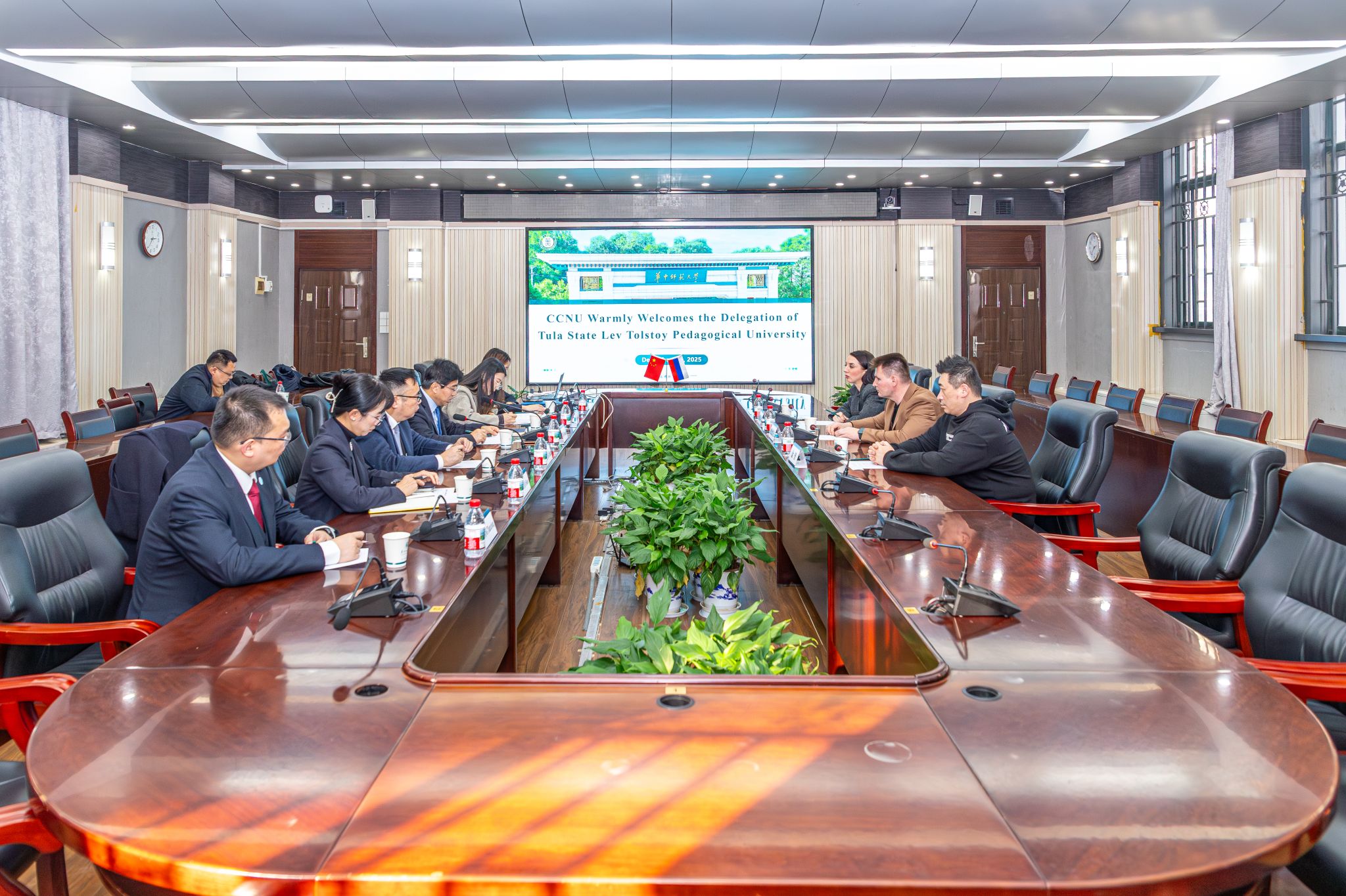 彭双阶对代表团再次到访表示热烈欢迎,并表示,中俄两国是好邻居、好伙伴,我校与俄罗斯高校近年交流频繁,两校共同的教师教育初心与办学使命为合作筑牢根基。他简要介绍了我校新校区的建设规划和学科布局,并展望了两校未来的合作方向。