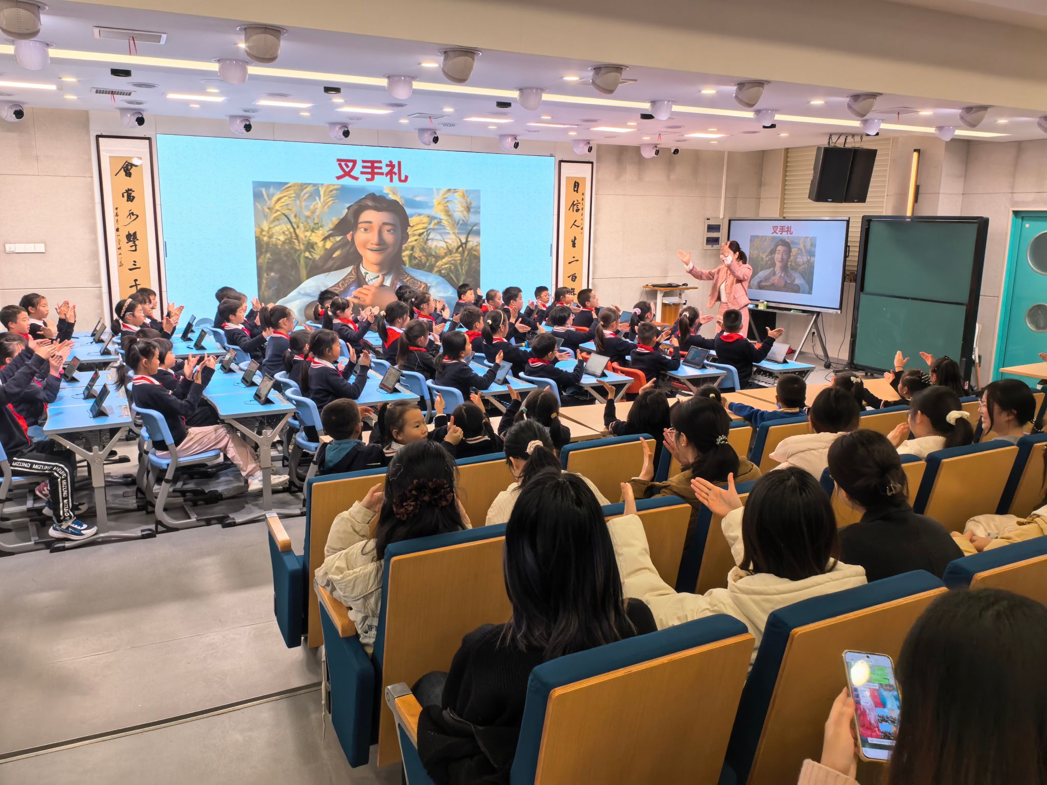 活动现场,蔡佳以《与“礼”同行》为主题,强化课程思政融入,借助“附小智脑”AI工具辅助教学,通过情景模拟、小组讨论等多样化教学形式,呈现了一堂生动鲜活、内涵丰富的班会课。蔡佳强调了班会课的育人本质特征,讲解了《与“礼”同行》班会课的设计思路、实施要点以及不断改进之处,让在场师范生深刻体会到优质教育活动背后的专业态度。汪丽梅结合课例再次强化了育人导向的班会课设计与实施相关理论与核心知识,组织师范生积极与蔡佳交流互动。