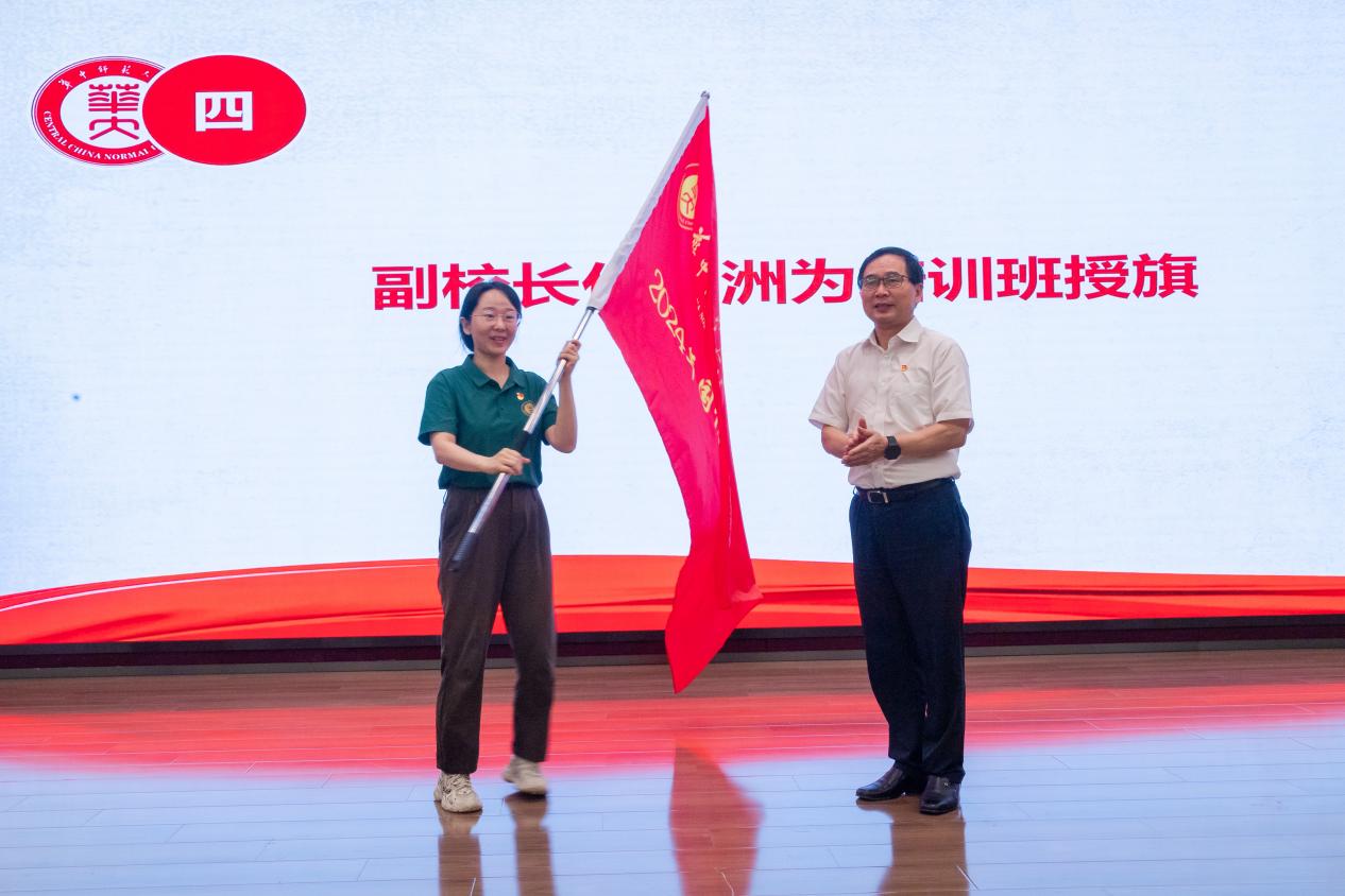 华大在线讯(通讯员 宋一帆)6月28日,我校2024年国情教育研修班开班仪式在文科综合楼101报告厅举行。来自教学科研单位的52名青年教师参加开班仪式,副校长任友洲出席并为研修班授旗。