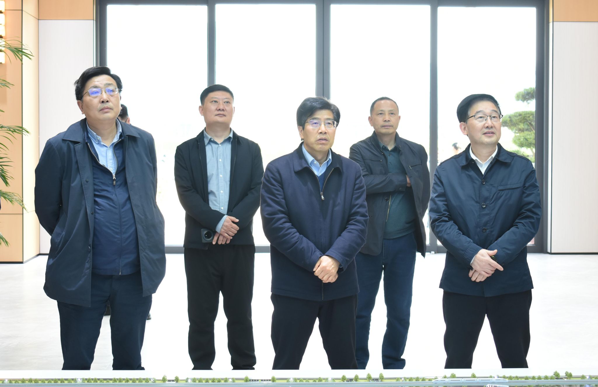 在察看盘龙城校区展示中心建设布局、听取功能能级与技术应用汇报后,彭双阶对前期建设成效给予了充分肯定。他强调,盘龙城校区是学校长远发展的战略支撑,展示中心要锚定高水平设计、高品质建设与高效能落地的目标,在功能上紧扣“四个未来”展示定位,以多媒体融合、数字孪生和智能交互技术,全景呈现育人路径,推动前沿科技与师范教育双向赋能;在内容上兼顾产教融合与科教融汇,注重教育科技与建筑科技的有机结合,针对不同受众打造分层分类展陈;在建设中坚持实用为先,引入学校自主研发成果,将绿色低碳、智慧能源理念贯彻项目建设全过程,打造兼具现代质感、智能属性与前瞻视野的综合性示范展示中心。