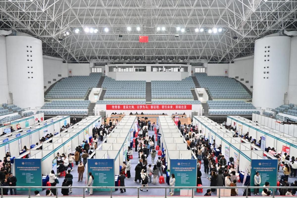 华大在线讯(通讯员 郭曜宁 付筱喆)3月20日,由就业工作处主办,城市与环境科学学院、公共管理学院、国家文化产业研究中心、经济与工商管理学院、历史文化学院、信息管理学院、政治学与国家治理研究院联合承办的华中师范大学文旅农经管学科2026届毕业生双选会在佑铭体育馆主馆举办。