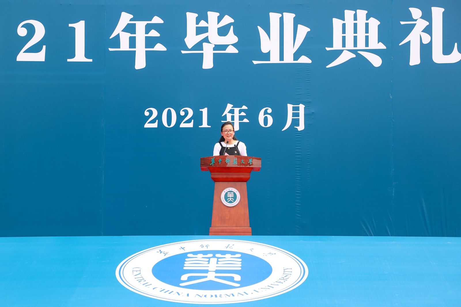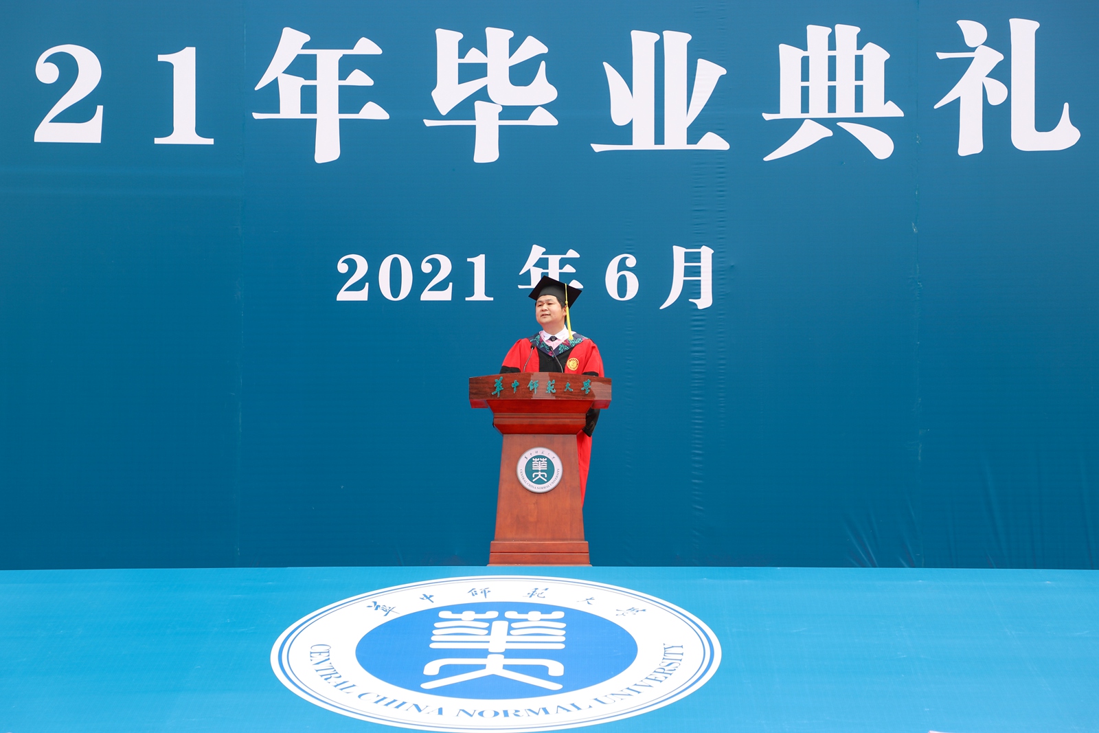 郝芳华向2021届同学表示衷心祝贺,向2020届同学致以亲切问候,“在华师求学的时光里,你们和祖国同行,与学校共进。正因为有你们,桂子山始终洋溢着坚强与大爱;正因为有你们,百年老校始终传播着希望与力量。”