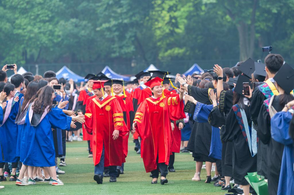 桂子山上,数载寒窗;初心不忘,筑梦远航。80余名导师分列佑铭体育场两侧,为所有毕业生一一拨穗,并颁发学位证书。2021届毕业生们即将怀着对母校的不舍情,带着师长的新期许,从这里起步,迈向人生新征程。