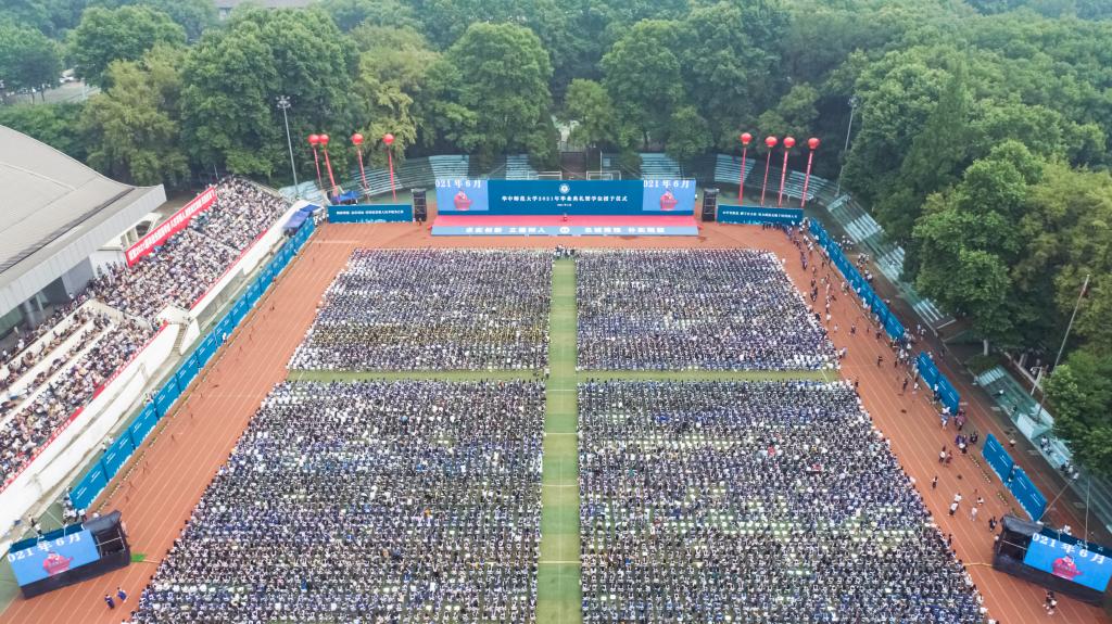 华大在线讯(记者 郝日虹)6月13日,华中师范大学2021届毕业典礼暨学位授予仪式在佑铭体育场隆重举行。校党委书记赵凌云,校长、党委副书记郝芳华,校党委副书记查道林,副校长彭南生,副校长夏立新,校党委副书记、纪委书记陈厚丰,副校长任友洲,副校长彭双阶、副校长李鸿飞,校党委副书记陈迪明以及学校学术委员会代表、教职员工代表、各职能部门和学院党政负责人,与8950名2021届毕业生、2234名重返校园的2020届同学、3024名家长共同出席我校史上最大规模的毕业典礼,见证这一难忘时刻。毕业典礼由彭双阶主持。