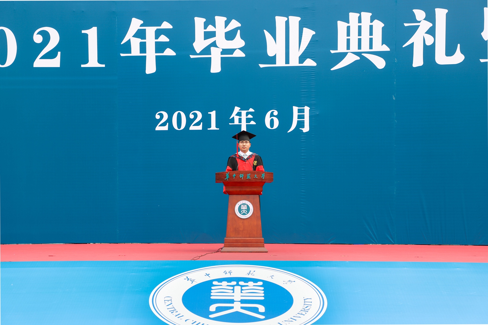 桂子飘香时入校,栀子花开时话别。毕业本科生代表、化学学院2021届本科毕业生麦尔比耶木·穆塔力普庆幸四年前能够与华师相遇,在这里,点亮教师梦,倾注民族情,铸就青春底色,接过新时代的接力棒,到党和人民最需要的地方绽放。