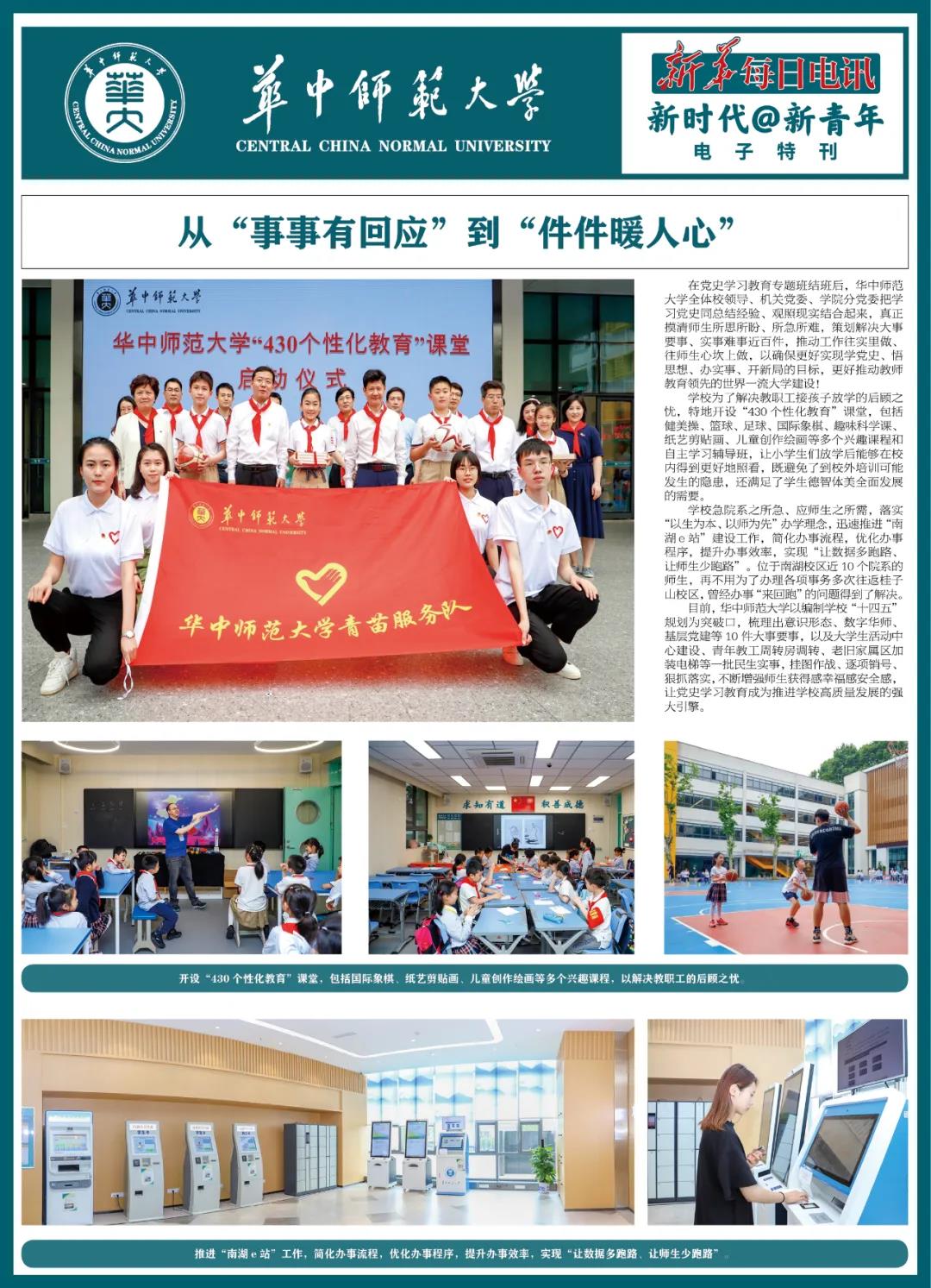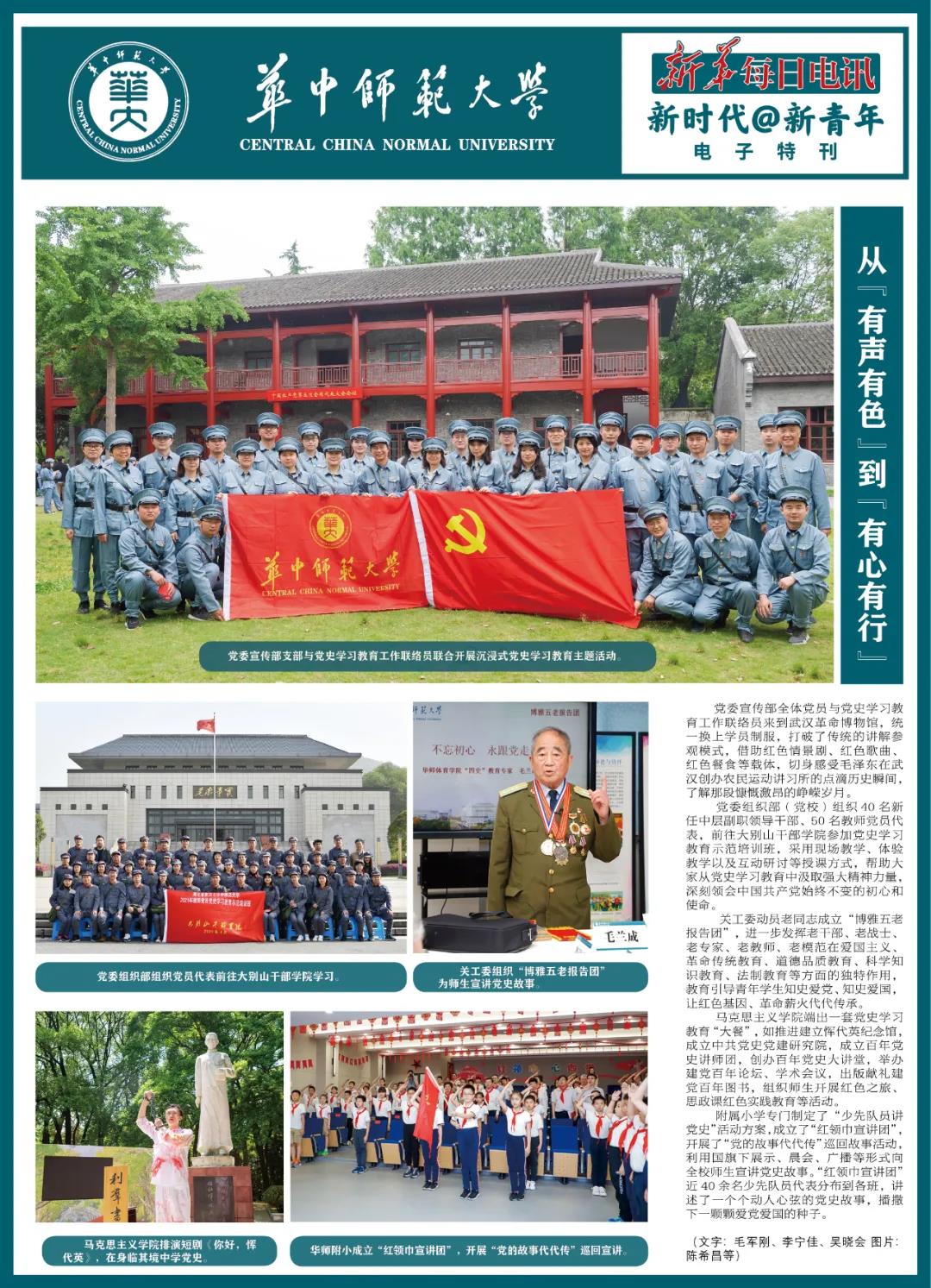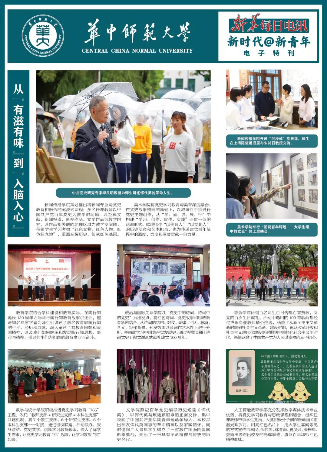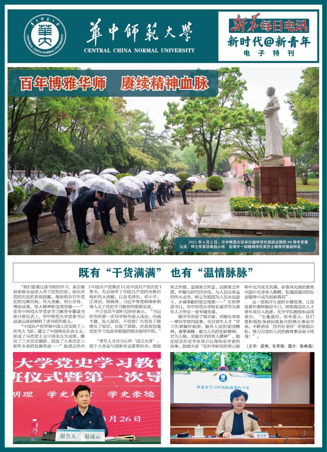 编者按:6月16日,新华通讯社主办的中央级主流大报——新华每日电讯电子特刊以《百年博雅华师 赓续精神血脉》为主题,分别以《既有“干货满满” 也有“温情脉脉”》《从“有滋有味”到“入脑入心”》《从“有声有色”到“有心有行”》《从“事事有回应”到“件件暖人心”》为版面标题,集中报道我校开展党史学习教育、传承百年红色基因、熔铸坚定理想信念等工作。现将全文摘录如下。