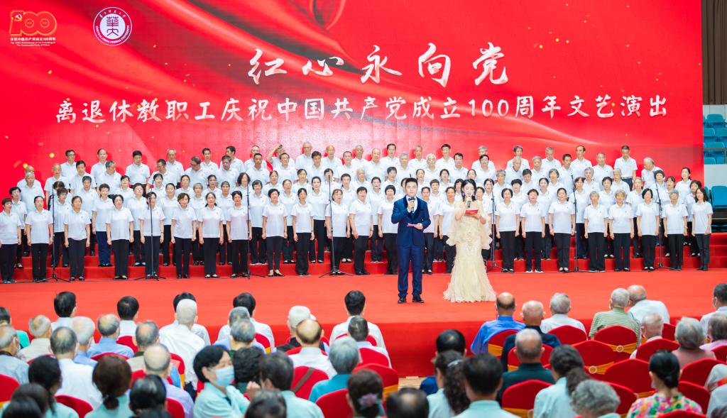 华大在线讯(通讯员 潘珞琳 记者 毛国樨)6月19日,“红心永向党”离退休教职工庆祝中国共产党成立100周年文艺演出在佑铭体育馆举行。校党委书记赵凌云,校党委副书记查道林,副校长夏立新,校党委副书记、纪委书记陈厚丰,副校长任友洲,校党委副书记陈迪明出席。相关职能部门以及二级学院负责人、“光荣在党五十年”老党员代表、离退休教职工代表和学生代表参加。