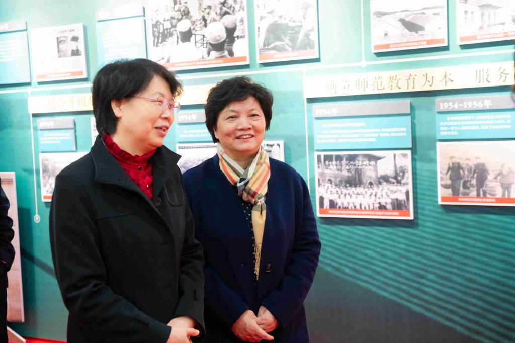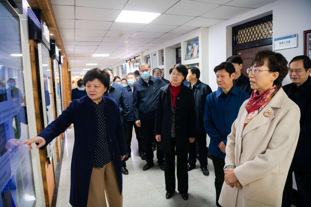 孙红梅副主席一行先后参观了学校红色印记展、中国农村研究院和新南门,实地考察学校特色办学情况,了解了华中大学、中华大学、中原大学进行教育报国的红色历史以及中国农村研究院以田野调查为鲜明特色的学科发展态势。