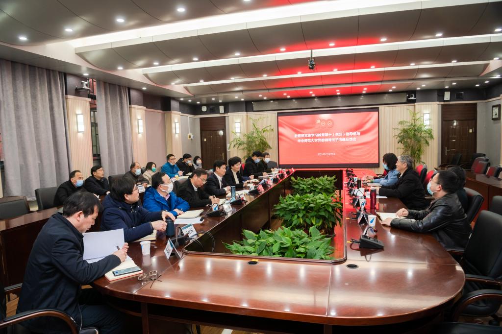 华大在线讯(记者 华轩)12月27日,教育部党史学习教育高校第十(巡回)指导组与学校党委领导班子沟通反馈会在行政楼一楼会议室召开。组长欧可平、副组长罗中枢以及巡回指导组成员,全体校领导以及学校党史学习教育领导小组办公室相关成员单位负责人出席座谈会。会议由欧可平主持。