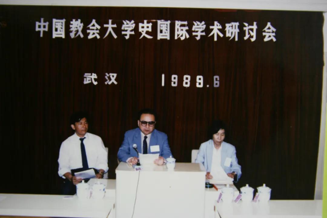 1989年6月,首届中国教会大学史国际学术研讨会在华中师范大学召开,章开沅先生(中)主持大会