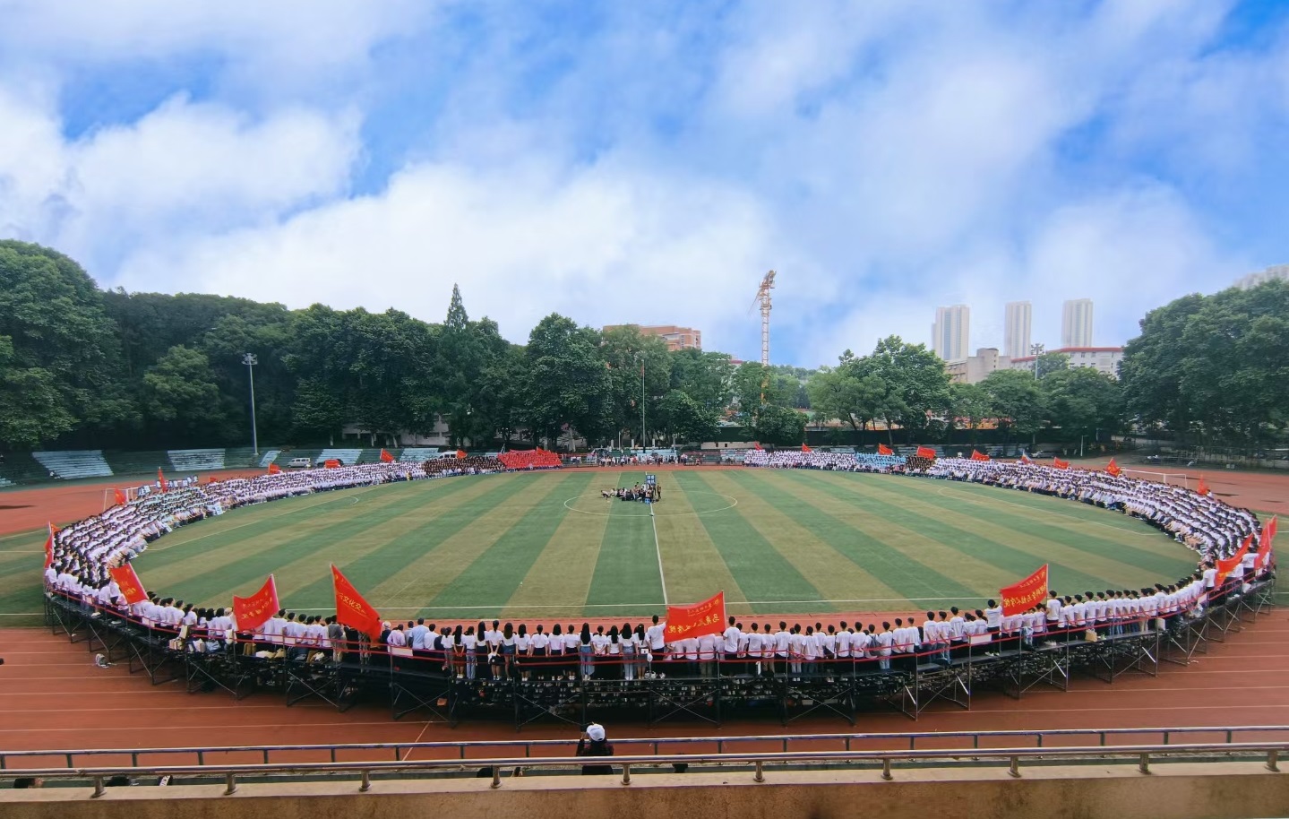 华大在线讯(记者 毛国樨 张瀚文)5月27日,我校2021届毕业生齐聚佑铭体育场拍摄毕业全家福合影。全体校领导、相关职能部门及各教学科研单位负责人、教师和7000余名毕业生共同见证了这一难忘时刻,用一张圆满的毕业照为自己在桂子山的学习时光画上圆满句号。
