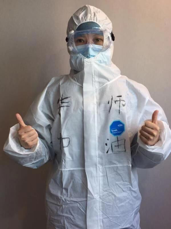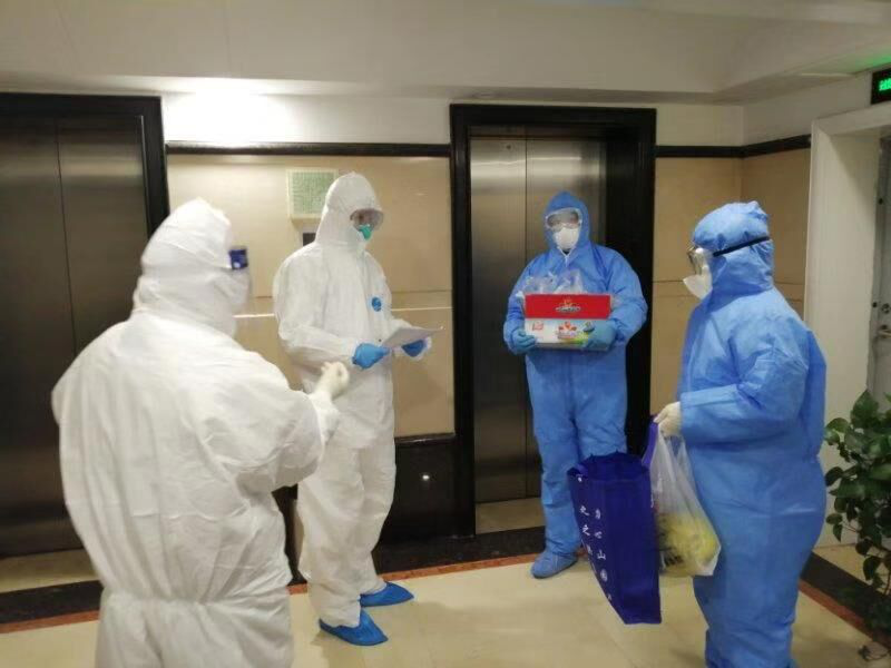 校医院大外科主任黄谦和护士黄代清是我校首批到达隔离点的医护人员,工作困难远超他们的预料。隔离点由一家酒店改造,酒店原工作人员因为紧张已全部撤离;6 个医护人员分成三组每组轮值2天,每天都会换一批新的疑似患者进来,94间病房新老患者不断更替,新病患不断收治;隔离点配发的防护服、N95口罩数量有限,他们要紧巴着用;防护服只能做到二级防护,有时候稍不注意就划破了;消毒用品供应不过来,无法对隔离区域及时采取有效的消毒措施;房间没有热水,去了隔离人员的房间回来,无法进行自身消毒。最让他们头疼的是,近90名隔离人员中,一部分是已经过肺部CT检查的疑似患者,还有部分确诊患者因市内定点医院收治不下暂时无处可去。2月6日,医生吴琳和护士廖丽莉进驻隔离点。2月5日和6日这漫长的48个小时里,他们因一位病患出现呼吸困难一次次进行协调沟通。危难时刻,他们一方面尽己所能安抚这里的病患和密切接触者,并积极寻求学校和上级部门的支援。另一方面,他们坚持每天通宵轮值,每天监测隔离人员的体温,耐心解答病患的问题,指导用药,定期向学校和上级部门汇报工作进展。杨立新腹泻三天,依然坚守隔离点的岗位。他们相互鼓励、勇敢应战。
