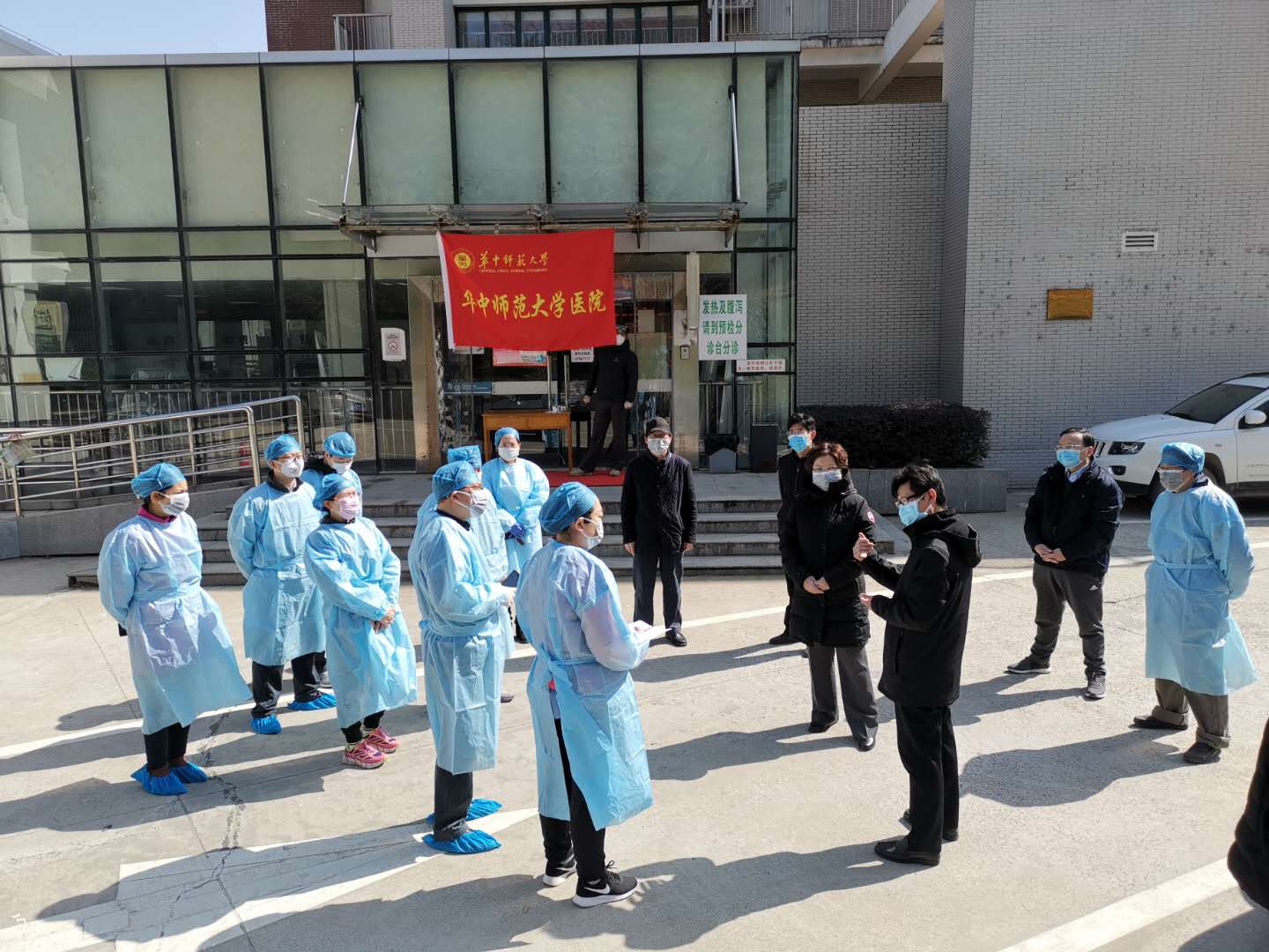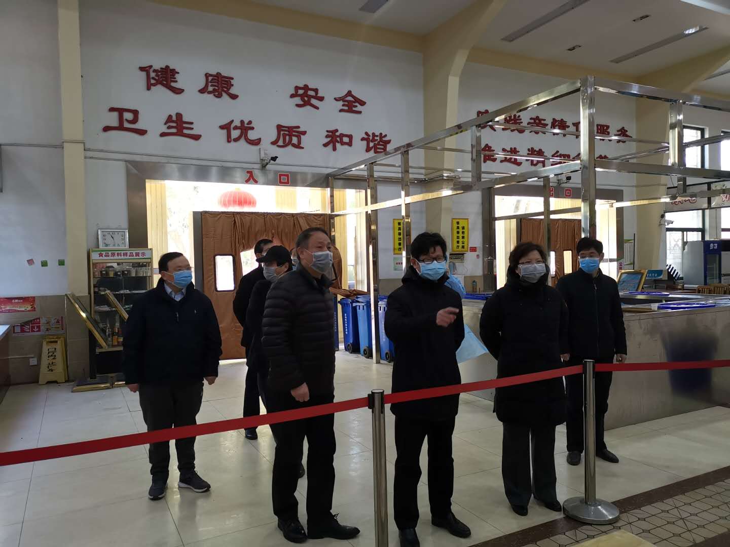 “消毒措施是否到位?食品储备是否安全?校内订餐是否可以保证供应?”在东区学子餐厅,校领导们仔细询问了防控事宜,对冷库、配餐区和消毒区进行实地检查。随后校领导们前往东区家属区、校医院和学校车队应急保障点进行巡查走访,详细了解一线的工作情况,看望和慰问值守一线的医护人员、党员突击队队员和汽车服务队队员,并叮嘱大家注意防护。