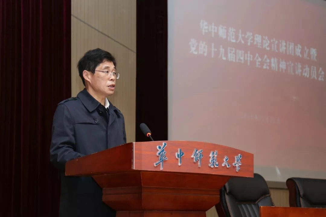 为切实学好、弄通、做实习近平新时代中国特色社会主义思想,把学习贯彻习近平新时代中国特色社会主义思想不断引向深入,学校党委决定组建“华中师范大学理论宣讲团”。学校宣讲团采取“总团+分团”的形式,宣讲总团由校党委负责组建和管理,各分党委(党总支)组织和管理宣讲分团。宣讲团成员共135人,涵盖了全体校领导,校党委中心组成员,党政机关、直属单位主要党务干部和机关党委委员,分党委书记、副书记,党员院长和具有相关学术背景的专家学者。宣讲团将立足学校、辐射校外开展宣讲,确保习近平新时代中国特色社会主义思想、党的十九大精神和党的十九届四中全会精神实现全覆盖,宣讲到每一位师生员工。