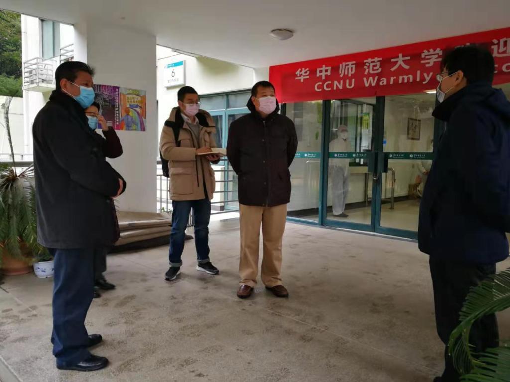 华大在线讯(通讯员 李志)2月6日上午,外交部领事司副司长周立民在省委外办副主任冯细国、领事处处长尚忠的陪同下,到我校调研检查国际学生新型冠状病毒肺炎疫情的防控工作。副校长彭双阶、国际文化交流学院党总支书记王琍及办公室主任李志陪同检查。