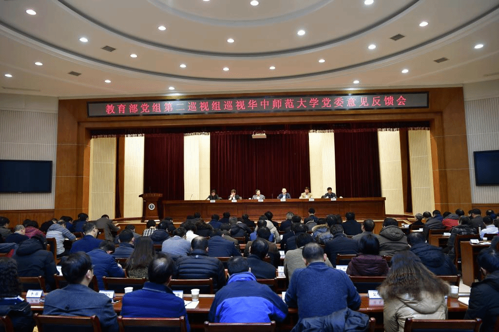 华大在线讯(记者 华轩)根据教育部党组统一部署,2019年1月8日,部党组第二巡视组向华中师范大学党委(以下简称华师党委)反馈巡视情况。受部党组委托,教育部巡视工作办公室副主任陈伟传达了部党组关于巡视工作的重要指示精神,部党组第二巡视组组长刘建平,副组长胡近、李国早向学校主要负责人和领导班子分别反馈了巡视情况。之后,刘建平代表部党组巡视组进行了大会反馈,陈伟对巡视整改工作提出要求。校党委书记黄晓玫作表态发言,校长、党委副书记赵凌云主持会议。