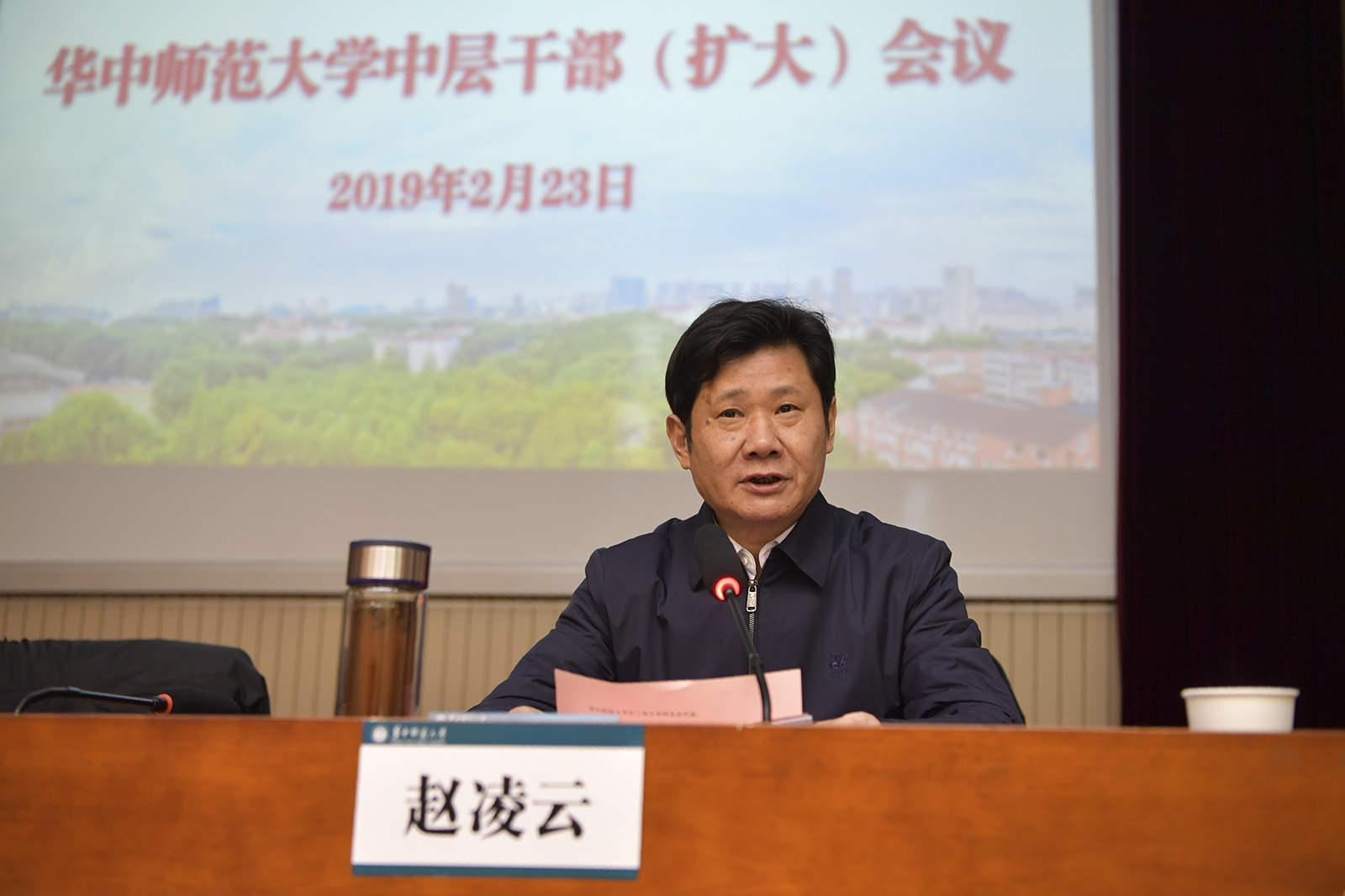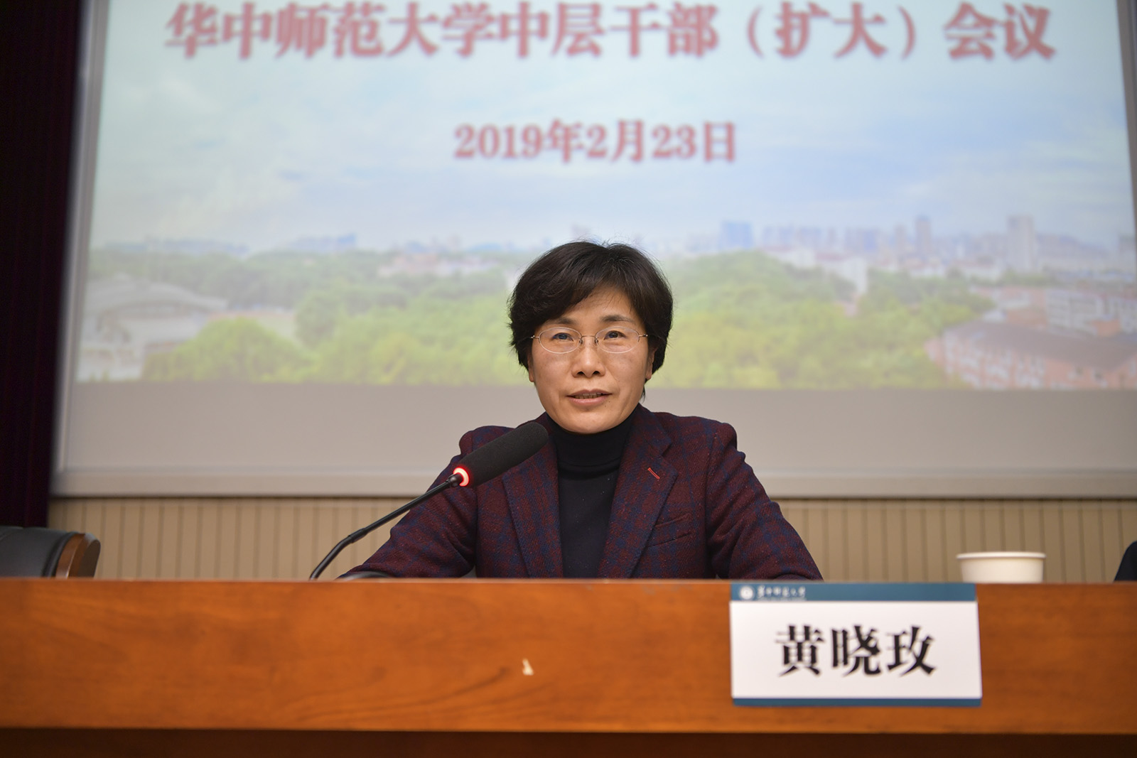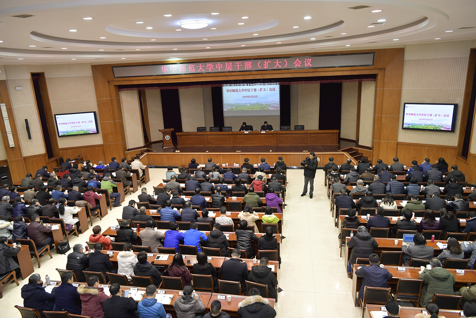 华大在线讯(记者 胡找心)2月23日,我校中层干部(扩大)会议在科学会堂一楼报告厅举行。校领导,校长助理,中层干部,教代会执委、工会常委,民主党派基层组织、统战团体主要负责人参会。大会由校党委书记黄晓玫主持。