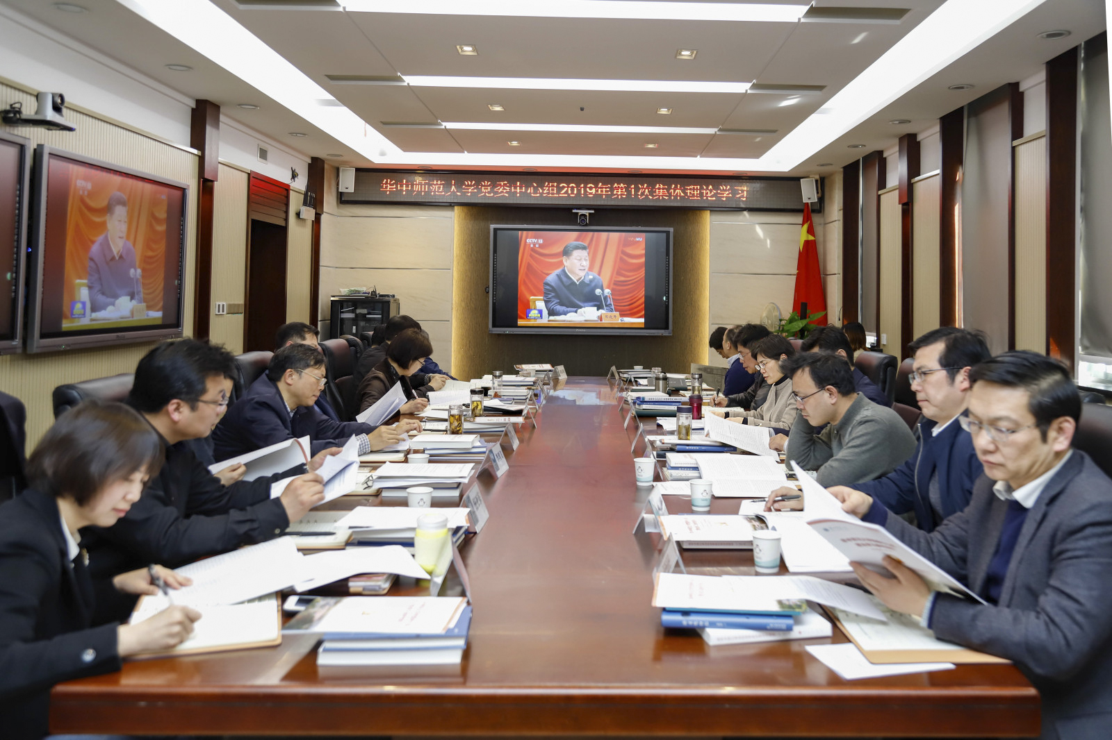 华大在线讯(记者 马俊)3月12日,校党委理论学习中心组举行2019年第一次集体学习,围绕学习宣传贯彻落实《中共中央关于加强党的政治建设的意见》,结合巡视整改、深化综合改革和本年度重点工作,就如何加强党的政治建设开展了专题学习讨论。校党委书记黄晓玫主持会议并讲话,校党委理论学习中心组成员参加讨论学习。