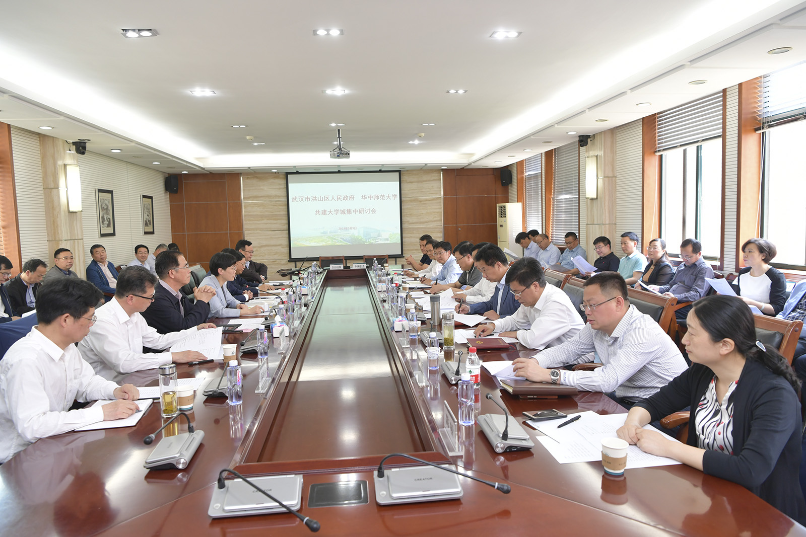 华大在线讯(记者 党波涛)5月9日,洪山区华中师范大学共建大学城集中研讨会在科学会堂301会议室召开。洪山区区委书记杨泽发、区人大主任刘悦斋,校领导黄晓玫、赵凌云、蔡红生、覃红、彭南生、夏立新、陈厚丰等出席,洪山区和学校相关部门负责人参加。研讨会由校党委书记黄晓玫主持。